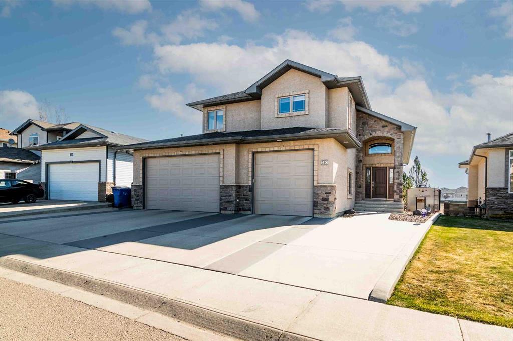 Highly sought after, custom built, modified bi-level walkout with triple heated garage, concrete RV parking pad and a 30 AMP electrical plug. This home has an open floor plan with vaulted ceilings on the main level, an abundance of custom cabinetry in the kitchen and large island. Two bedrooms, a full bathroom and laundry room on the main floor, as well as a gas fireplace in the living room. Massive master bedroom above the garage, with large ensuite and walk-in closet. Downstairs you will find a wide open floor plan, with 10' ceilings and huge windows across the back. Also in the downstairs, you will find a bedroom/office, as well as a full bathroom and gas fireplace with a thermostat on the remote. This home has all the bells and whistles, including many recent renovations and upgrades as follows: quartz countertops with undermount sinks, both upstairs and downstairs, luxury vinyl plank flooring throughout the main floor and master suite, soaker tub with wallboard surround in the master ensuite,. Gemstone LED lighting installed in eaves, keyless entry on multiple exterior doors and Ring doorbell at the NEW front door. Oversized covered deck looks onto a natural reserve, with gas line for BBQ and a set of custom stairs and landing to the backyard. Tons of storage inside and outside, including multiple storage cabinets in the storage room under the stairs and in the utility room, plus an 8x12 barn style shed in the backyard and 7 custom steel cabinets with overhead racks and hooks in the garage. The garage also has 2 floor drains and a hose bib, ideal for pressure washing. This home truly has to be seen in person to appreciate everything it has to offer!!