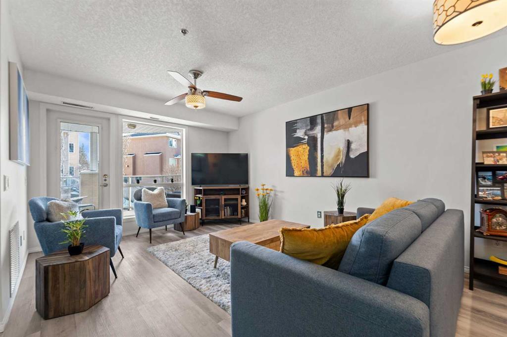 You've been looking and looking. You really want to be in Dana Village. You even celebrated your 55th birthday, three years ago. You know it's time. You hear the notification bell. This is it. A bright, over-sized, one-bedroom, main floor unit with vinyl plank throughout. The kitchen has all the cabinets you need for your dinnerware. Quartz countertops to display your toaster oven and espresso machine. A breakfast bar too. You know you have two stools that will fit nicely underneath. You wonder if the couch converts into a bed, and it does, a queen bed. You love the furniture and might even purchase it along with the unit. You notice how big the bedroom is. And that carpet, it looks new. It must be soft too. Oh, a walk-through closet. This is perfect. You see the laundry room has the ThinQ stacked washer and dryer. You know with board approval you can bring your furry friend too because the unit is on the main floor. A 12-minute walk to the Westside Recreation Centre, a 10-minute walk to the Sirocco LRT Station, and a 5-minute drive to the Signal Hill Shopping Centre. Daily activities to participate in with the residents, a hobby room for woodworkers, and a single-stall manual car wash. This is it. You call your favorite realtor to book a showing as fast as you can.