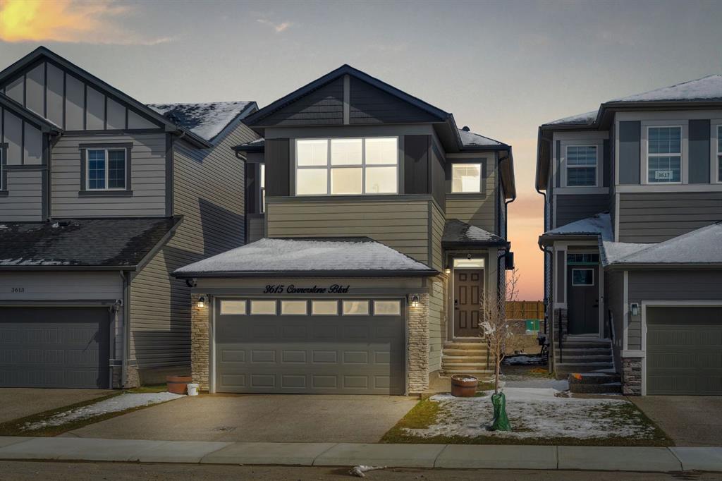 4 BEDROOMS + BONUS ROOM | SPICE KITCHEN | MAIN FLOOR BEDROOM + FULL BATHROOM | HIGH END FINISHES | Welcome to your Dream Home in the vibrant community of Cornerbrook, Calgary!This exquisite abode offers an unparalleled blend of elegance and functionality. As the proud first owners, meticulous care and thoughtful upgrades have transformed this 4 bedroom residence into a haven of luxury. This home is designed to accommodate every lifestyle need. The main floor welcomes you with a bedroom and full bathroom, perfect for guests or multigenerational living. The kitchen is a chef's delight with quartz countertops, an oversized sink, stainless steel appliances and upgraded backsplash. Additional highlights include a gas stove in the spice kitchen, glass chimney, upgraded glass cabinets and extra drawers. The inclusion of a spice kitchen elevates the culinary experience to new heights. From the smart lock to the upgraded garage door opener with camera, every detail has been meticulously considered. Revel in the luxury of 36’ height vanities, tiles up to the ceiling in washrooms, and sleek black hardware throughout the house. Upstairs, the master bedroom boasts a lavish 4 piece ensuite with upgraded floor tiles and a custom frameless shower glass. Enhanced by upgraded cabinetry in all bedroom closets, the home exudes both style and practicality .Additional 2 good size bedrooms and a bonus room complete the upstairs. Upgraded extra large windows throughout the house and in the stairs flood the house with light throughout the day. The basement offers limitless potential with two windows, a rough-in for washroom, and a separate entry, awaiting your personalized touch. With a 9-foot ceiling height and Separate private entry,basement is primed for customization. A front double car garage ensures ample parking space, with 2 car parking space on the upgraded aggregate driveway. Conveniently located near essential amenities and transportation options, this home offers easy access to shopping centers, serene ponds, walking pathways, and playgrounds. With quick access to major roads, navigating the city is a breeze. Don't miss the opportunity to make this meticulously maintained and upgraded residence your own. Contact your preferred realtor today to schedule a showing and embark on the journey to owning your dream home.