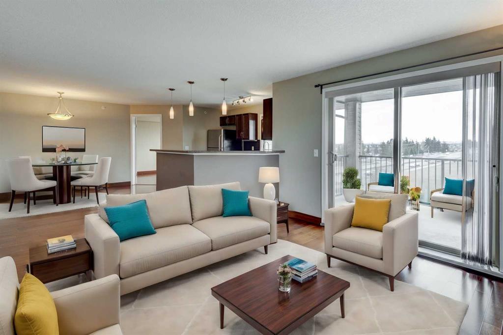 Introducing Unit 2440 at Bridlecrest Pointe in the heart of Bridlewood, a vibrant community nestled in Calgary's sought-after Southwest. This immaculate condo offers a coveted Southwest corner location, granting sweeping views of lush greenspace from its covered balcony. As a top-floor end unit, enjoy the added tranquility of no neighbors above. Boasting nearly 1000 sq. ft. of thoughtfully designed space, this open-concept gem features a masterful layout with two bedrooms and two full bathrooms. The generously sized master suite easily accommodates a king-size bed and features a walk-through closet leading to an ensuite bathroom. Additional storage space enhances practicality.The kitchen is a chef's delight, featuring elegant granite countertops, OAK FORTRESS CABINET, and a convenient microwave hood fan. Entertain with ease in the ample dining area, perfectly suited for your 2m dining table. Relax in the spacious living room, ideal for accommodating oversized sofas and a large coffee table, all under a knockdown ceiling adding a touch of modern sophistication. Dark Mexican Rosewood laminate flooring flows throughout, adding warmth and charm to the space. Recent upgrades include new faucets in both bathrooms, further enhancing the modern aesthetic. The second bedroom offers versatility, presenting an ideal space for a home office or kids' bedroom. A laundry room with stacked washer and dryer units and in-unit storage further elevate convenience. Included with this remarkable condo is one underground titled heated parking stall, ensuring comfort during Calgary's winter months. Plus, enjoy the added benefit of electricity included in the condo fee. Bridlecrest Pointe offers the perfect blend of comfort and convenience, with shopping, schools, biking/walking pathways, and easy access to Stoney Trail, allowing you to reach destinations such as Fish Creek Park, Costco, and more. Don't miss the opportunity to make this your new home. Contact your Realtor today to schedule a showing and experience the lifestyle that awaits at Bridlecrest Pointe.