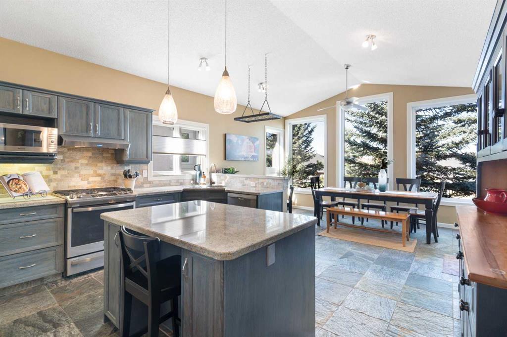 Welcome to this beautiful 3406 square foot developed 5 bedroom walk-out bungalow in an ideal location in the prestigious community of Christie Park, boasting a brick exterior and offering a harmonious blend of classic elegance and modern amenities. Entering this delightful home, you are greeted by a spacious living and dining room providing a warm and inviting atmosphere with its vaulted ceiling - ideal for gatherings and entertaining. The thoughtful layout of this home leads you to the open kitchen and a generously sized second dining / nook area featuring a coffee bar with beverage fridge and showcases the cathedral ceiling and full height and width windows that bathe this area in natural light. The gourmet chef's kitchen is a culinary enthusiast's dream boasting an abundance of quality cabinetry, granite countertops, and high-quality stainless appliances. It's a space where every meal becomes a masterpiece. That's just the beginning. Step through the exterior door and you'll discover the pièce de résistance: a massive upper balcony complete with an oversized outdoor gas fireplace. This outdoor oasis is the perfect setting for enjoying Calgary's sunny days and cozy evenings with family and friends. On the main level, you'll find two great sized bedrooms, with the primary bedroom featuring a double door entry, a spacious walk-in closet and updated bathroom, ensuring your comfort and privacy. Additionally, an updated laundry room / mudroom on this floor leads to the oversized double garage, providing both convenience and functionality. Descend to the walk-out basement, where you'll find a wealth of space and possibilities. A huge rec room with a gas fireplace is ready to host game nights or movie marathons, and the adjacent media room is ideal for those seeking a private gym or home theatre. Need a dedicated workspace? There's an office that's soundproofed, perfect for a recording studio or for aspiring musicians. The basement also offers three additional spacious bedrooms, where one currently is used an an exceptional office - this floor plan ensures that there is room for everyone, as well as a spacious storage room to keep your belongings organized. Another 4-piece bathroom adds to the comfort and convenience of this level. This Christie Park bungalow is not just a home; it's a lifestyle. With its spacious living areas, outdoor retreat, and versatile basement, it's a place where you can truly live, work, and play. Don't miss your opportunity to call this exceptional residence yours. This location is moments away from major roadways, transit including the LRT, shopping, restaurants, recreation facilities, some of Calgary's top schools and loads of parks, playgrounds and pathways. Walkout bungalows in an exceptional location do not come available very often. Note: new 35 year asphalt shingle roof installed in Dec/2023.