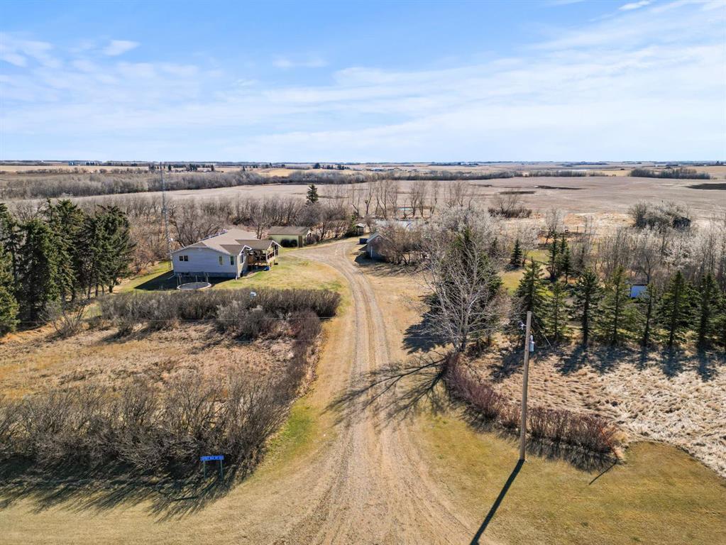 Welcome home to this beautifully updated 7.43 acre acreage just north of Sedgewick. This truly turn key well cared for property is a must see and features a bright and open floor plan with luxury vinyl tile, updated countertops and back splash and a floor plan that is ideal and functionable. The kitchen has ample cabinetry and features an RO system, new fridge(2022), good sized pantry and additional cabinetry added to allow for even more storage. There are two good sized bedrooms on the main floor as well as an excellent laundry space, full bathroom as well as another half bath. Downstairs is fully finished and complete with in floor heating, large family room and 3 generous sized bedrooms. The attached and heated(in floor) garage is a wonderful touch and a great space to park on those colder days. There is a detached double car garage with new roof(2017) as well as a 24x30 insulated and heated shop that is ideal for anyone looking for more space. A newly built 16x16 covered deck complete with dimmable lighting and new eaves complete this lovely home. A private fire pit area, good garden and room to build another shop! Enjoy all the wonderful things about living in the country right here.