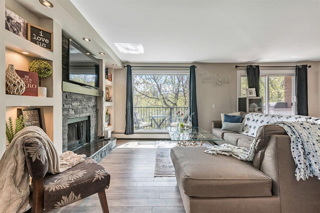 Stunning renovated condo with a contemporary open floor plan, floor to ceiling windows, two private balconies bordered by gorgeous mature trees & downtown views. All windows and patio doors were recently replaced. The expansive living area opens to the kitchen with full height cabinets, granite counters and newer stainless steel appliances allowing for easily entertaining guests or enjoying a relaxing dinner and movie night. The king sized primary bedroom has a walk in closet with built in shelving and drawers. Noteworthy highlites include high quality laminate flooring, a laundry room with lots of extra storage, wood burning fireplace feature wall, underground parking and storage locker. The Sussex House is a well managed exclusive condo complex in Bankview only minutes from all of the trendy 17th Ave shopping, restaurants and coffee shops!