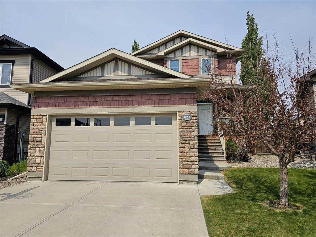 Welcome home to 431 Mary Cameron Crescent North. The perfect family home situated on a quiet cul de sac in the amenity rich area of Legacy Ridge, only a few blocks from St. Teresa of Calcutta School. This open concept home boasts a generous foyer which leads into the open concept light filled kitchen, dining room and great room. The kitchen features maple stained cappuccino shaker cabinets, granite countertops and an upgraded stainless steel appliance package with oversize full fridge/freezer and Bosch dishwasher. The great room boasts a gas fireplace and spacious layout. The main floor conveniently offers a two piece powder room along with laundry room complete with washer and dryer and storage. The upper floor offers a spacious primary bedroom with four piece spa bathroom featuring an oversized tiled shower and separate jetted tub. Two additional upper bedrooms and a three piece main bathroom complete the upper level. The lower lever is an entertainers dream with multiple areas to host family and friends. Enjoy a game of pool, billiards or watching your favorite sports team in the oversized recreation room. The lower level rounds out with a second three piece bathroom and light filled fourth bedroom perfect for guests or an ideal home office space. This home has fully landscaped yard with mature trees, alley access and is conveniently located close to neighboring parks. Don't miss your opportunity to call this place home. Call your favorite Realtor and book your private showing.