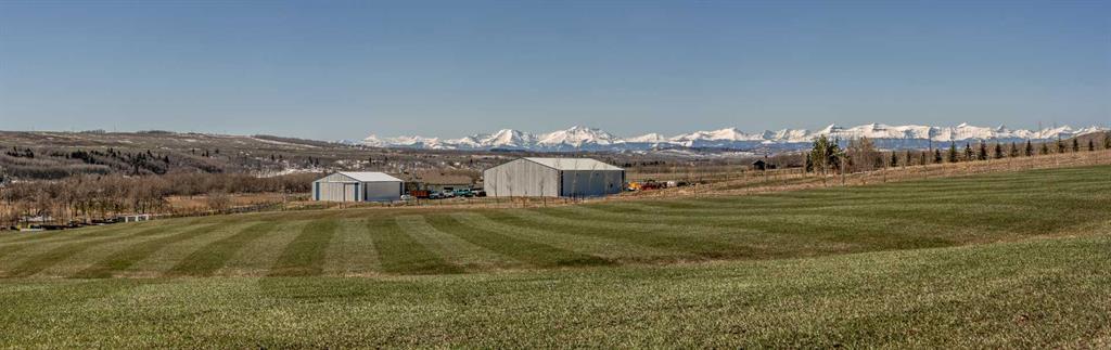 More than amazing property here located within the perfect triangle of 4 great towns!! Okotoks, High River, Black Diamond, Turner Valley. All within 15 min the longest. Just off 434 paved highway and nestled into 134+- acres of rolling beautiful contour and topography! Full on MOUNTAIN views, with private setting. Fully developed Walk out bungalow with heated attached dbl garage with many features including custom built cabinetry, main floor laundry, huge and welcoming the mountains are the west side windows and deck! Great plan with plenty of space . 54 X 100 full on deluxe dream shop !!! YES you read that size right !!! Divided into two areas, this shop has a 2 pc bath, a small kitchen bar, office, man cave , 2 - 14 X 16 ft over head automatic doors, walls are 16 ft high, 2 man doors, 3 X 220 power plugs. An upscaled sump system, infared heaters , H & C running water ! Huge barn 40 X 50 with a stall plus one portable that would stay . Land is magnificent !! Rolling with mountain views, trees, Spring creek runs through property seasonally , a registered dug out which is full 365 days a year !!! Stand by generator is supplied and included. Upgrades for house include new shingles in 2019, Blanco sinks in kitchen ( one farm style and one veggie sink ) , New low flush toilets, dishwasher and washer and dryer . Turret style roof line on the west side of home brings a sweet sunny family room with exposed timbers and a west wall of windows for the view to live for !!! Nice natural decor through out with some nice kitchen features including huge island banked full of storage, specific storage areas for baking pans, lazy susan, and adding that there is a veggie sink and farm sink that overlooks the mountains. Views from all west side of home including basement walk out windows deliver amazing views always !! Land is cross fenced, there are panels set up to paddock the horses outside the barn. auto waterers, hydrant, and a great providing well. All maintenance is up to date, land owned by " Land Stewards" !! Seasonal " Spring Creek" flows through south end of property. Rolling land provides super drainage plus privacy and a great property to raise livestock . Land goes up the hill to the top row of trees to the south. Its a beautiful piece of land with more than amazing views. Owner also leases the road allowance on the east side of property which is a huge plus. ( neighbor and owner in the past had shared year over year) Great well flow and good water . New fencing recently, and some nice trees and landscape to add.. Check it out, this one is a specialty with no doubt.. More info available upon request. Drone photos to be added within a day.