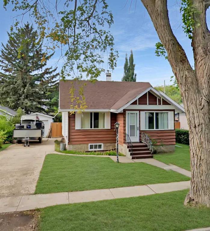 Welcome to this charming downtown Stettler home! Built in 1914, this character-filled residence enjoys a prime location on one of the area's most picturesque streets, situated just 2 blocks from main street and 2 blocks from the schools. Despite its modest size, this home exudes quaintness and features a spacious main floor with a large master bedroom, complemented by an additional bedroom downstairs and another room in the basement, offering versatility and ample space for expansion. The property includes a 4-piece bathroom upstairs and a 2-piece bathroom downstairs. Recent upgrades, such as a new roof and vinyl siding installed in 2020, ensure both durability and modern appeal. Whether you seek to renovate the home to your taste or simply infuse it with your personal style, this property presents an excellent opportunity for those seeking affordability without compromising quality. Storage is a highlight, with a detached garage featuring concrete flooring, along with a generous parking/RV pad on the south side. The partially fenced backyard not only provides privacy but also offers the potential to complete the fencing for those with pets. Whether you are an investor (the current renters are exceptional and keen to remain), a retiree looking to downsize, or a first-time buyer, this property offers exceptional value with an unbeatable location.