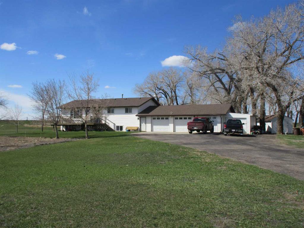 Come and check out this 1276 sq ft 6 bedroom raised bungalow that is on the market for the first time ever. This home was built in 1982/83 is located on a 2.52 acre parcel of land, and has been occupied by the same family for the entire time. The road to this property is paved and is a short distance to Vauxhall . In addition to having 6 bedrooms, this home has Oak kitchen cupboards/cabinets with under cabinet lighting, newer fridge / stove, main floor laundry, a closed in 27' X 12' deck on the back of the home, a 10' X 24' deck on the front of the home. The home has 1 1/2 bathrooms with room in the basement to add another bathroom if you desire. There is a triple (3 bay) garage attached to the home with a walk up from the basement and an additional 24' X 11' attached garage bay. That's right, this home has 4 garage bays. If you need more storage there is a 24' X 10' shed on the east side of the home that was built during 2023. The home is heated with a forced air furnace and has a wall a/c unit in the upstairs family room that cools the home during those hot summer nights. The water for the home is fed from a pond and ten filtered with a reverse osmosis system that works great. The pond is filled with water from BRID. There is a garden area, lots of grass for the kids to play and trees for shade. This is a great family home with lots of space for your family. Call your favorite realtor and come check this place out.