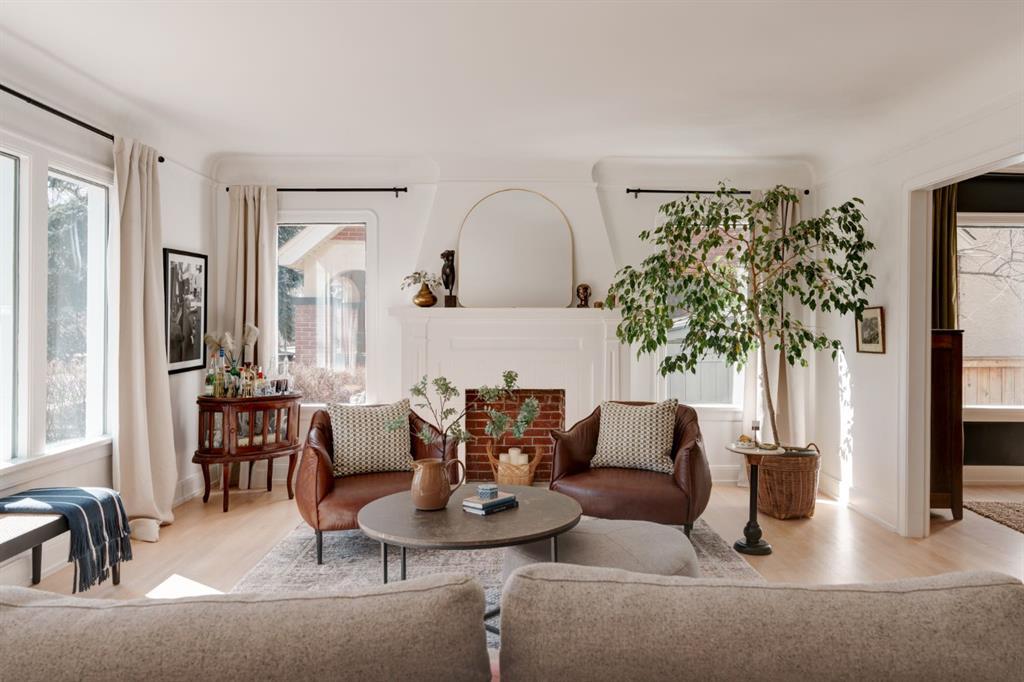 This gorgeous character home is located on a beautiful tree-lined street in one of Calgary’s most sought-after communities, Upper Mount Royal. Striking the perfect balance of timeless elegance and refined finishes, this property is steps away from countless amenities and a short commute to the downtown core. The beautifully updated home features 4 bedrooms (3 up, 1 down), 3.5 bathrooms, 3 living areas and a prevailing charm not found in many homes. Refinished original hardwood flooring spans the main living areas with large windows throughout the property which allows natural light to flow into the home from morning to night. The front living room is highlighted by an original brick fireplace with a graceful, curved overmantel creating a warm and inviting atmosphere for relaxation. The living room leads into a formal dining room with ample space for family dinners and access to both the family room through French doors and the kitchen. The timeless white kitchen includes a built-in breakfast nook, pantry, granite countertops and a suite of stainless-steel appliances including a Viking gas range and a built-in Sub-Zero fridge. The upper level of the home features a large primary suite that is a true retreat, complete with a spa-like ensuite bathroom offering dual sinks, a soaker tub, walk-in tiled shower, and a walk-in closet. This level has two more generous bedrooms, a full bathroom and linen closet making it ideal for a growing family home. The fully finished basement (with new carpet) offers plenty of entertainment options including a media area for family movie nights while still allowing enough room for a studio space or home gym. A large guest bedroom, full 3-pc bathroom and additional storage completes the lower level. French doors off of the family room lead to the private west-facing backyard complete with a large patio and plenty of green space for the family to enjoy. If the summer heat is too much, the central A/C will keep the property cool all summer long. Completing the property is a double detached garage (22’x20’) providing ample storage space and keeping your vehicle and valuables safe all year long! Situated on a quiet and secluded street, you'll enjoy a high level of privacy and tranquility while providing easy access to schools, shopping, and a network of green spaces. Don't miss your opportunity to own this exceptional piece of Upper Mount Royal history!