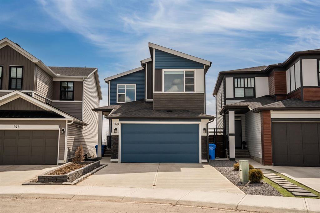 Welcome to this fully finished 3-bedroom, 3.5-bathroom home in the coveted community of Livingston. It has over 2500 square feet of developed living space and features over $50,000 worth of upgrades, an oversized double-attached garage, a low-maintenance landscaped yard, and a fully finished basement! Step inside and be greeted by 9-foot ceilings and stylish vinyl flooring that flows throughout the main floor. The kitchen is a chef's dream, boasting full-height cabinetry, a massive island, stone countertops, upgraded stainless steel appliances, a walkthrough pantry, and a charming stone backsplash. The kitchen's ample counter and cabinet space make it ideal for entertaining, while the walkthrough pantry to the mudroom adds convenience. The bright and airy living area seamlessly connects to the dining area, offering access to a low-maintenance composite deck and meticulously landscaped yard—perfect for hosting gatherings or simply enjoying the outdoors, where you can soak in downtown views. The open layout effortlessly transitions to the dining and living rooms, where a cozy fireplace with a stone wall and mantle creates a warm ambiance. A trendy feature wall adds a touch of contemporary flair, and the powder room completes this level. Upstairs, discover a versatile flex room/bonus room that can serve as a TV or playful space for kids. The primary bedroom connects to a spacious walk-in closet and laundry for added convenience. Indulge in the luxurious ensuite bathroom with double vanity sinks, a large soaker tub, and a walk-in shower. Two additional bedrooms are bright and spacious, with a main bathroom completing this level. The builder-finished basement features a welcoming rec room that opens to a wet bar with a stone wall and stone countertops, perfect for entertaining guests. A full bathroom completes this level. Outside, the fully fenced backyard is a private retreat featuring low-maintenance landscaping and a charming fire pit area—ideal for unwinding after a long day. This home has many energy-efficient aspects, including the south-facing triple pane windows, the tankless water heater, a high-efficiency furnace, and an HRV system. Built by a reputable builder, Cedarglen Homes, with over $50,000 worth of upgrades, including an extended garage to accommodate a larger truck. There is nothing left to do but move in. Livingston is a vibrant, family-friendly community with easy access to Stoney Trail, Livingston Community Centre featuring a 35,000 sq ft homeowners association with 3 skating rinks, tennis courts, a basketball court, a gymnasium, splash park, playground, outdoor amphitheatre, meeting rooms, a temporary fire hall and a planned future hospital & Green LRT Line making this location ideal. The location provides its residents easy access to various amenities, schools, shopping centers, and transportation routes. Don't miss the opportunity to experience this captivating home. Schedule your showing today and discover your dream home!