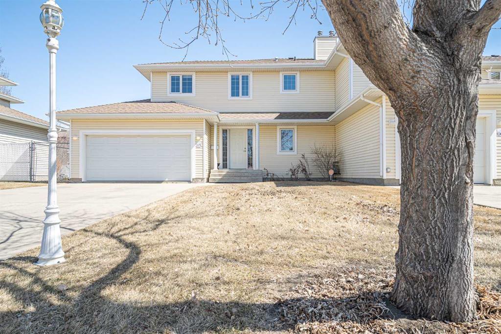 Beautiful end unit townhouse with double attached garage and large fenced yard! This property has recently been updated with new carpet and paint, bathrooms have had some updates in recent years and the kitchen is dressed up with attractive back splash. The layout includes 3 bedrooms and a 4-piece bathroom up and the main floor features a 3-piece bathroom with laundry and an open concept kitchen, dining and living room with views out to the mature backyard. The finished basement includes a family room and rec room that also serves as a great theatre room or home office! You can enjoy the outdoors from the back deck and enjoy summer nights beside the fire! You can also access the backyard from the garage and the shed provides additional storage for your seasonal toys and furniture. Additional features include central A/C and underground sprinklers.