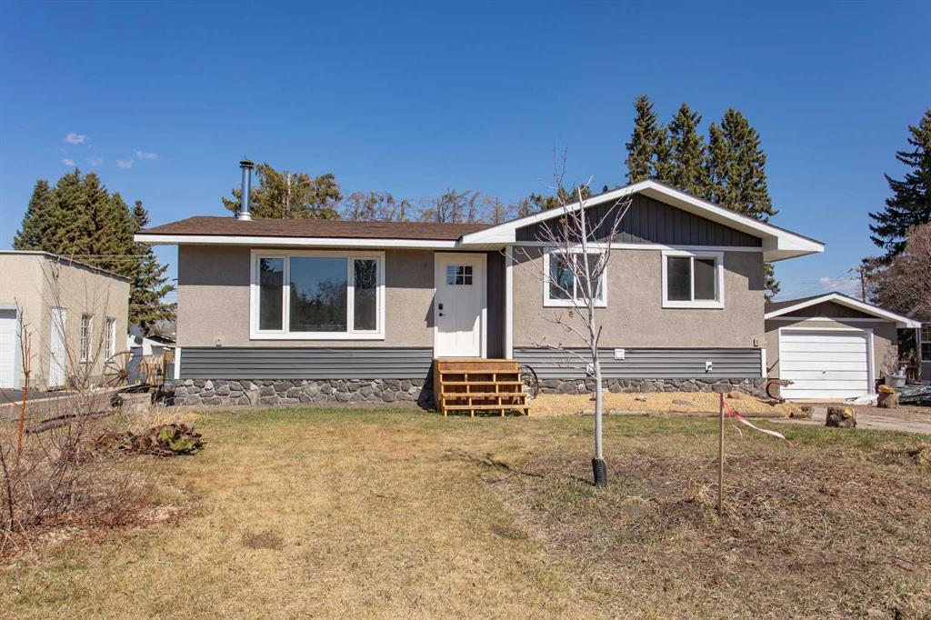 Here it is! A completed removated home on one of Lacombe's large residential lots in the Heart of Downtown Lacombe! This gorgeous bungalow has had an extreme makeover in the past couple years and it is a pleasure to show! Great curb appeal and you won't be disappointed when you open the front door! A beautiful kitchen boasting white cabinetry, quartz countertops and stainless steel appliances. Spacious living room has a wood burning stove - great for those chilly spring nights and very efficient in the winter months reducing your natural gas bills! Two bedrooms including the primary with double closets and a four piece ensuite plus another 4 piece bathroom for guests on the main level. The basement has a family room, 2 more bedrooms, 3 piece bathroom and utility room. This home has spray foam insulation around the perimeter and the interior was stripped down to the studs and has been totally renovated including plumbing and electrical. The exterior of the home and single car garage was also renovated. The lot is oversized and has lots of room to build a detached garage/shop without compromising living space in the yard. Back alley access - mature trees - close to schools, walking trails and downtown. This home is beautiful and you will appreciate the quality craftsmanship throughout!