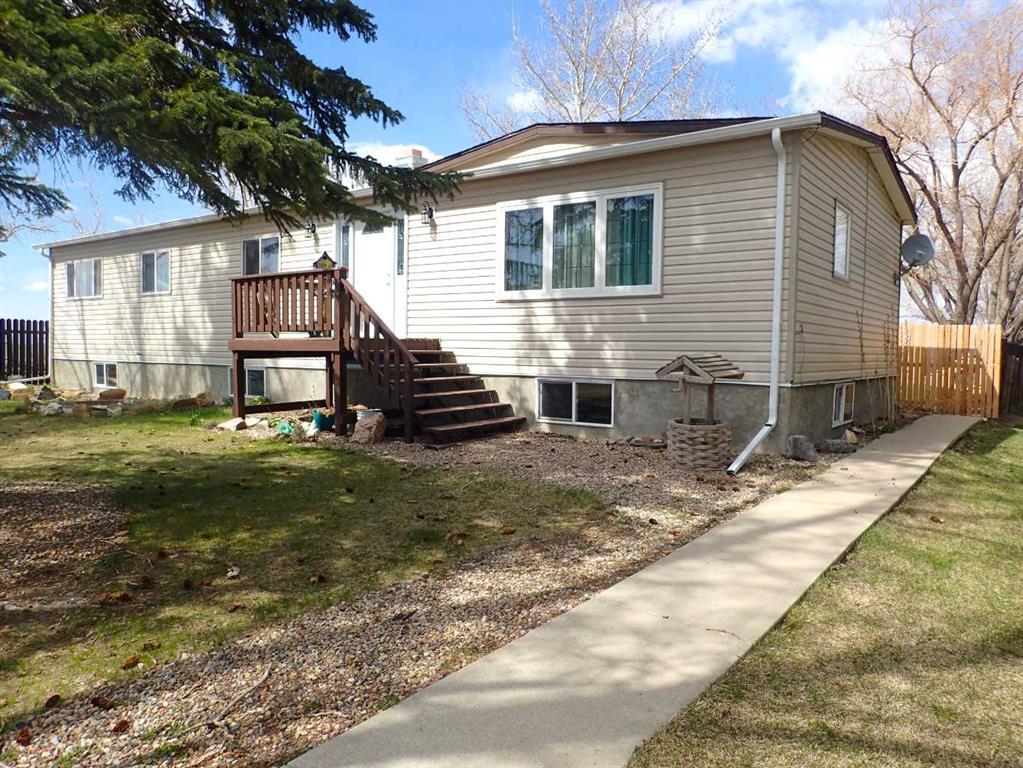 Welcome to the village of Warner! Located just 40 mins south of Lethbridge and 30 mins north the U.S boarder where you can enjoy a little slower paced living. This large lot with trees is fully fenced, has a built in sandbox and a beautiful corner pond is complete with a 5 bedroom, 3 bathroom home. At 1,358 sq ft, there's plenty of room for a family. On the main floor you'll be greeted by an open entrance with electric fireplace leading into the spacious living room. The dining area just past there, leads into the kitchen which boasts new appliances and a clean crisp countertop flowing into another dining space with patio doors to the back deck where you can enjoy summer days. Down the hall you'll find a full 4pc bathroom and 3 bedrooms, one being the primary with large closet and 3 pc bathroom featuring a walk in shower. The laundry is conveniently located on the main floor also. The full basement awaits your finishing touches where there's a large family room with built in bar made for entertaining, 2 more bedrooms, one that was previously used as a salon so the sink is there, a 2pc bathroom and ample storage space. A 22'x24' garage is attached at the back of the home and has plenty of space for parking and storage with built in shelves. Hot water tank and Furnace have been replaced in the last 2 years, the shingles, pvc windows and siding were done not long ago. LED lights have also been recently installed so enjoy the colours and patterns of all the holiday themes! If you're looking for a quiet community to get away to, this is it.