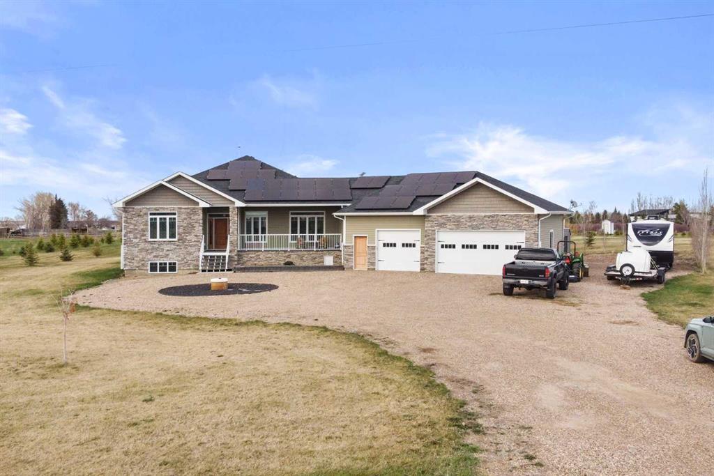 Beautiful acreage just off the Holsom road on RR 72 with 5 bedrooms, 3 1/2 baths. You are greeted by a large entry way before heading into the open concept living area. The kitchen is equipped with all the bells and whistles such as ample creme colored maple cabinets, quartz countertop, stainless appliance package with large fridge, double ovens, a two tier island with seating containing a gas stove top. A walk thru pantry is perfect to hideaway those small appliances, and offers easy access from the garage. The dining room has a big window overlooking the back yard and the spacious living room has a wood burning stove beautiful tray ceiling. The grand master bedroom also boasts a tray ceiling, walk-in closet with plenty of storage space and a barn door closure. The ensuite bath boast a luxurious oversize, to the ceiling shower with multiple shower heads and a soaker tub. Dual sinks are always a plus and there is ample storage! There are 2 good sized other bedrooms and another 4 piece bath in between them. Off to the right of the entry is a half bath and large laundry room leading out to the garage. The lower level is set up great for relaxing or entertainment. Offering a two tier wet bar with full sized fridge, TV and plenty of storage. The heart of the basement is host to an theater room with projector, speakers & screen and still leaving a ton of space for a play room/ rec room. Completing the lower level are 2 extra bedrooms, 4 piece bath and a separate private gym room. The triple attached heated garage has plenty of room for your vehicles and a workshop, complete with 220 wiring. An added bonus is a shower basin for garage or out door clean up! The outside has a beautiful composite deck, with a hot tub space as well as a fire pit area. There are 3.3 acres of room to roam with a playhouse, shed and numerous trees planted. . You have access to SMRID water for keeping the grounds in great shape with the first 2 acres on the underground sprinklers and the back acre with a release system in place. There is a 4200 gallon cistern for fresh water. Solar panels are great for helping with energy efficiently. Offers 200 AMP service. Text or call today for your private showing on this excellent acreage!