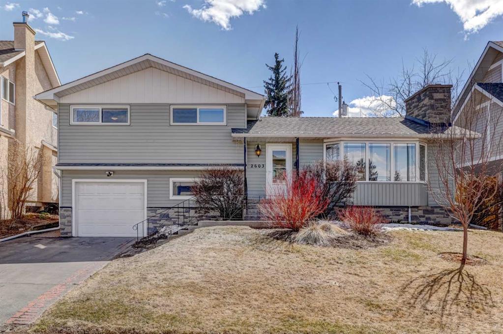 HOME SWEET HOME! Look no further, this is the DREAM HOME you have been searching for situated on a large, quiet 60x100' lot in a family friendly street with breathtaking curb appeal in the coveted NW community of Charleswood! This spectacular, FULLY UPDATED 4 level split offers 4 bedrooms, 2 bathrooms and 2,204 immaculate SQFT of living space throughout loaded with pride of ownership and extensive renovations including the kitchen, all bedrooms, all bathrooms, ceiling, new attic insulation, new engineered hardwood flooring, AIR CONDITIONING, new mudroom, composite deck and more. Heading inside you will fall in love with the open concept floor plan offering a mud room with beautiful built-ins, drawers and woodwork, a spacious living room loaded with natural sunlight and perfectly complimented by a rustic wood burning fireplace, a bright, formal dining area and the gourmet chef’s kitchen with quartz countertops, a stunning center quartz island with an eating bar perfect for entertaining, a pantry, premium stainless steel appliances and a stylish backsplash. Heading upstairs you will find a spacious primary bedroom with an extra-large closet. 2 additional larger bedrooms and lastly, an elegant 4 piece bathroom with luxury tile surround. The lower level features a 4th bedroom, beautiful 3 piece bathroom with luxury tile surround and a laundry room. In the basement you will find original charm and character with wood panelling, a massive recreation room with a wood burning fireplace, utility room and two storage rooms. Outside, there is a single attached garage with 2 additional driveway parking spots and the exquisitely manicured and fully fenced, south facing backyard with a path through the tranquil garden, large new composite deck and amazing perennials, trees and garden. This sought-after location is steps from all major amenities including the Brentwood Shopping Centre, University of Calgary, Vecova Aquatic Centre, University LRT station, Brentwood Library, Banff Trail School, Aberhart School, Triwood Community Association, major roadways and much more. This home is a MUST VIEW, book your private viewing today!