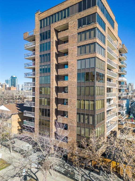 Welcome to this Beautiful 2 bed, 2 bath executive updated condo in prime location. With a wrap around balcony, wood burning fire place, city views, and best of all a heated underground parking. Walking into this the spacious front entry with gorgeous slate floors you walk down the short hallway into this warm and inviting open floor plan with an updated kitchen cabinets, corian counter tops, tile backsplash, lighting fixtures, and stainless steel appliances. The bright living and Dinning room area has gleaming hardwood floors, and patio doors leading out onto the corner wrap around balcony which has great city views. There are two oversized bedrooms and the good sized laundry room has been updated with the addition of cabinetry as well, as have the upgraded bathrooms. The building has penthouse level roof top patio, exercise room, sauna, games/meeting room, and main level bike storage room. It's a great location close to shopping and the beltline resturants. The unit currently has a great tenant that would be interested in stying if the Buyer would be interested. Call today for details and your private viewing!