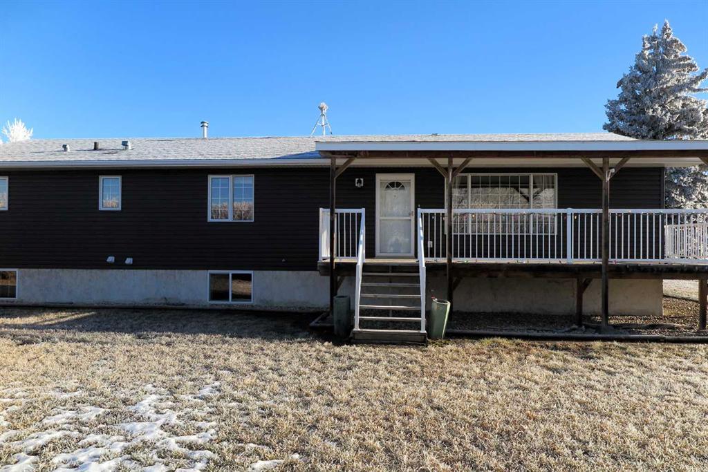 1737 Square foot bungalow located on an 8.12 acres in Irricana. Large living room has vaulted ceilings and corner gas fireplace. Huge country kitchen has loads of cabinetry, work space and a large dining area with a glassed door leading to a huge deck and yard. 3 good sized bedrooms up with the master having a walk-in closet and a 4 piece ensuite bathroom. There is a good sized mudroom with a 2 piece bathroom by the side entrance. Downstairs is partially developed with in floor heat, large family room and bedroom combination, 4 piece bathroom, laundry room, storage room and lots of space waiting for your ideas to do your own development. There is a large wrap around deck with a covered front porch. Outside you have an oversized double detached garage, 3 storage sheds and loads of room for future outbuildings and for play. Great piece of property to set up a business.
