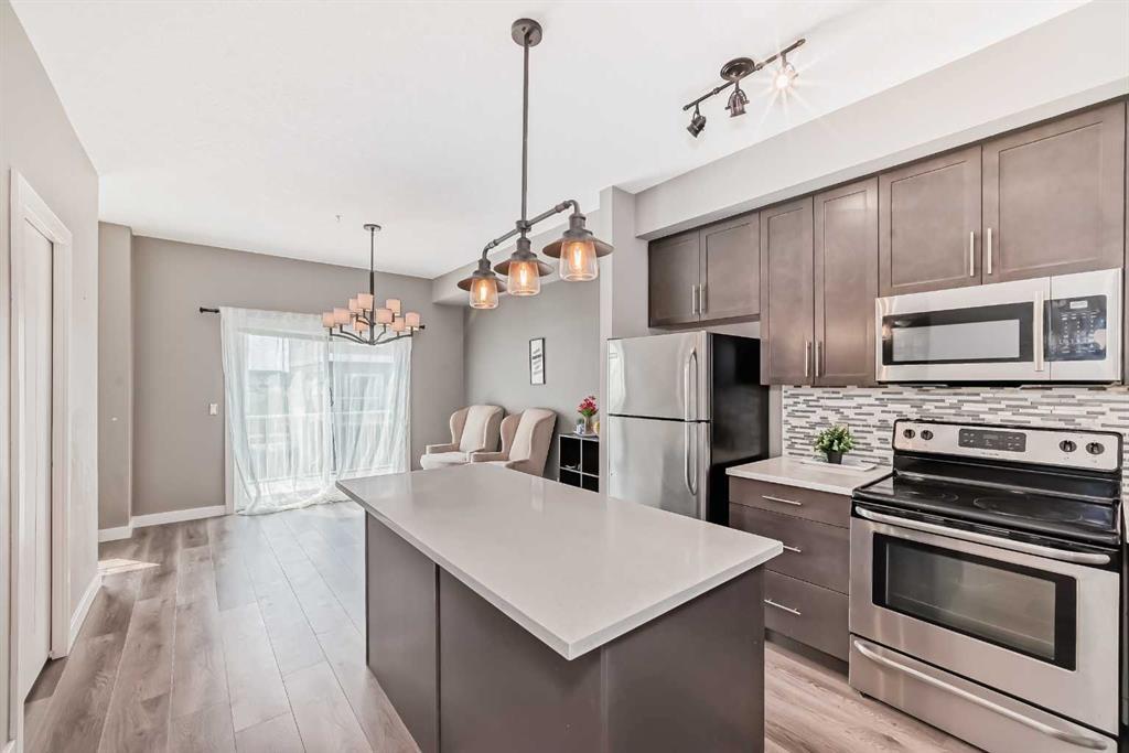 Renter just move out, so easy to show anytime. Maintenance-free living awaits in this sophisticated and modern townhome. Open and airy with oodles of natural light, stylish décor, and convenient dual master floor plan and heated, renovated dream garage, this beautiful home is sure to impress. The living room promotes relaxation with trendy barn wood feature wall, access to the front-facing balcony and unobstructed views into both the kitchen and dining room for carefree conversations. Culinary wonders are inspired in the stunning kitchen featuring quartz countertops, stainless steel appliances, full-height cabinets, and a peninsula breakfast bar for everyone together around as well as a centre prep island. Adjacently the dining room has plenty of room for entertaining plus a nook for a convenient spot for homework or catching up on emails. Host summer barbeques on the back balcony complete with gas line. This level is also home to a handy powder room. Dual master bedrooms grace the upper level, both are extremely spacious and bright with walk-in closets and each has its own private 4-piece ensuite, no more sharing! The heated garage could be a place to park your vehicle or thanks to the renovation its ideal as a man-cave, she-shed, gym or hangout space boasting epoxy floors and even a built-in stylish fireplace! Friendly neighbors add to the charm of this family-oriented community that offers two new school sites, a brand-new commercial development, multiple parks, pathways and green spaces plus easy access to Stoney Trail and Country Hills. This growing community is mere minutes to Cross Iron Mills and can take advantage of the skating rink in neighboring Skyview. Simply a fantastic home in an unbeatable location! New Dishwasher just installed. Call your favorite Realtor.