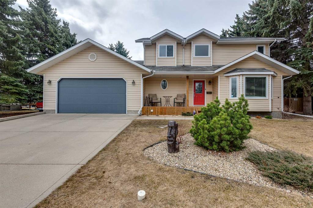 The extremely desirable English Estates subdivision in Lacombe, AB is well known for its large and private lots. 7 Dickens Lane is an extra wide (90' x 177') private oasis located near shopping and closely connected to Lacombe's famous walking/bike paths. The sellers have invested so much time and care into the property over the years. The next owners will benefit from the thoughtful yard design that includes: an expansive deck (finished in 2023) with glass and aluminum railing, gas line to the barbecue, Beachcomber hot tub, neat and tidy landscaping, 2 beautiful (and useful) garden sheds, firepit, etc. The entire backyard is fenced to ensure it's a safe place for your kids, grandkids, and your four legged friends too. You may never want to leave. If you happen to forget some supplies for your backyard party, just hop out the back gate and you are steps away from the Co-op Shopping Centre. 7 Dickens Lane had undergone many high quality renovations (windows, kitchen, appliances, bathrooms, flooring, finish carpentry, plumbing, on-demand hot water, etc.) just before the current owners bought in 2014. The master bedroom and amazing ensuite with jetted tub is located on the quiet second floor. Two other good sized bedrooms and a 4 piece bathroom complete the sensible second floor layout. The main floor features a unique kitchen with the coolest look. Sleek stainless steel appliances, built in convection oven, built in microwave, stylish hood fan, and granite countertops exude luxury. It's not just pretty, as the cabinets and giant island offer up tons of storage with its dove tail woodwork, smooth running hardware, and soft close doors. There's a couple of unique sitting areas off the kitchen where one can enjoy a relaxing coffee or a quick meal. The formal dining room has a great view of the back yard and opens up to the inviting living room. Good looking engineered hardwood adds to the main floor's elegance. The basement offers a fourth bedroom, a rec area, another full bathroom, and plenty of storage. Included in the basement (and with the sale) is the central vacuum with attachments, Bosch on demand hot water system, stand up freezer and second fridge. Along with the attached (heated) double garage, 7 Dickens Lane provides an incredible amount of off street parking - including a concrete parking pad with room for 60'+ of RV parking. English Estates offers easy access to Hwy 2A/QEII and the City of Lacombe's great facilities/amenities.