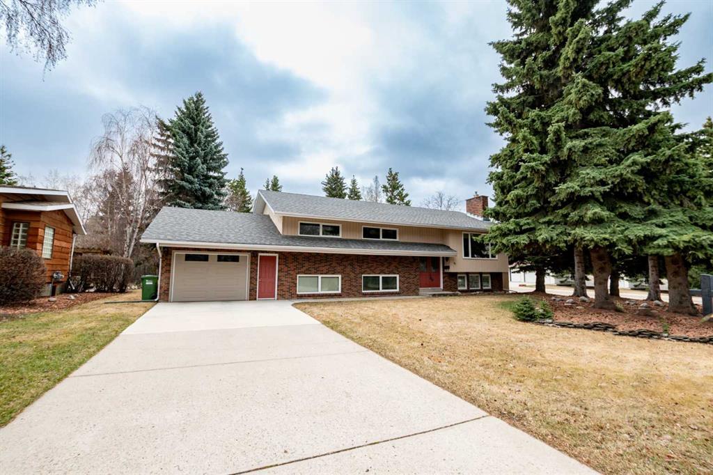 Excellent family home located in the Pines backing onto a wooded area. This extremely well kept home has 5 large bedrooms, 3 up and 2 down. The primary has a double closets and a 3 piece ensuite. The living room is a good size and adjoins a formal dining area. The kitchen has wood cabinets, full tile backsplash, and garden doors out to a partially covered deck. Downstairs there is a cozy family room with a gas fireplace and a large flex room right off of it. There is access to the garage and out to the backyard from the lower level. Along with the 2 bedrooms downstairs, there is a 3 piece bathroom. Fantastic yard with lots of trees, the lot is 180 ft. on 1 side with underground sprinklers. There is storage under the deck with a concrete floor. Vinyl windows and doors 2008, with dual pane low e-argon. 2 H/E furnaces 2019 with electric air filter and humidifier. Hot water tank 2019, Washer/dryer and freezer 2019. Shingles replaced 2017.