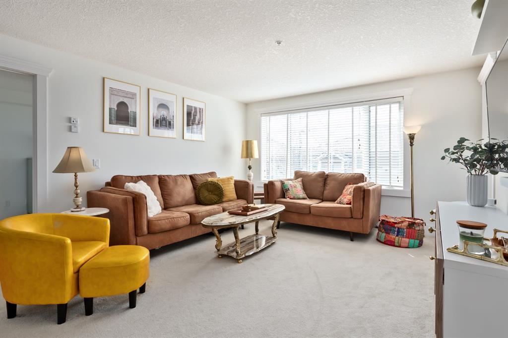 *OPEN HOUSE Saturday May 4th 1:00-4:00pm* THIS IS IT - The one you've been waiting for... A bright, 2 bedroom CORNER UNIT in a terrific location! This beautifully kept home features a roomy front entrance, updated light fixtures and many windows. Open concept and filled with RADIANT NATURAL LIGHT. The spacious kitchen boasts GRANITE COUNTERTOPS, NEW LG DISHWASHER, stainless steel appliances and a comfortable breakfast bar. Both bedrooms are nicely sized. The primary bedroom has a walk-thru closet and 4-pc ensuite with relaxing soaker tub. Relish in the sunshine on your private SW facing balcony. The convenient main floor location makes it very easy to handle pets and groceries. Other notable features include: UNDERGROUND PARKING with storage locker, in-floor heat, central vacuum and in-suite laundry. This is a very well run and clean building, with a gym, party room and theatre room (TV room) for occupants to enjoy. The only thing better than this gorgeous unit, is the location itself. Rocky Ridge offers easy access to the LRT, shopping, schools, the YMCA and the mountains. There are pathways directly outside of the building that lead to parks and beautiful Rocky Mountain views! Residents also have private access to Rocky Ridge Ranch; an abundant community centre with a lake, splash park, boat rentals, skating, tennis courts, basketball, yoga, community events and more. You will love living here! Check out the 3D VIRTUAL TOUR and book a showing before it's too late!