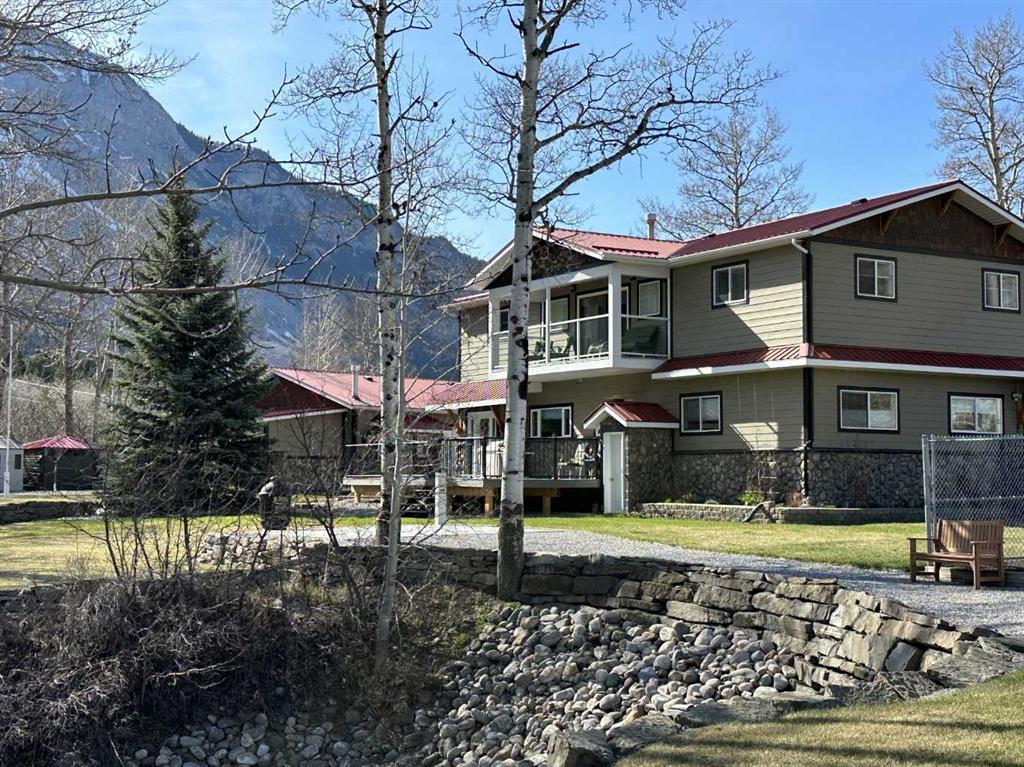 Stunning river front property in the beautiful southwest Alberta Rockies. The breathtaking setting of this 1.2-acre property in the Crowsnest Pass, has town water and paved road. The exquisitely developed and cared for acreage features the main house, a large garage with a games room, and a 40’ x 60’ newer shop to store both an RV and work on equipment. This home has beautiful views in every direction and the wonderful sights and sounds of a mountain river. There are four bedrooms, two bathrooms, spacious living areas, and a covered deck to enjoy the views of one of the nicest properties in the Crowsnest Pass. Expert stonework, landscaping, fenced garden, and much more to enjoy.