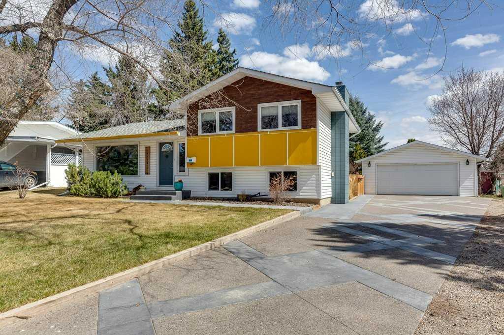Discover a serene retreat in the heart of Red Deer! This upgraded Sunnybrook home offers almost an acreage-sized lot within the city, providing you with the best of both worlds. Step inside to experience a unique 4-level split floor plan, starting with the spacious living and dining area on the main level. The kitchen boasts solid wood cabinets. Upstairs, find three inviting bedrooms and a stylishly upgraded main bath. The third-level family room features a cozy gas fireplace, custom wood shelves for your dream library, and another modernized bathroom. The fourth level, accessible from the rear entrance, houses an extra-large bedroom, laundry, and storage space. Outside, enjoy the double garage with a brand new patterned concrete driveway, beautifully landscaped yard, and large patio. Relax in the gazebo with stereo lighting, take a break in the cedar wet sauna, or gather around the fire pit area for cozy evenings. Plus, there's ample parking for an RV or two. This home boasts numerous upgrades, including vinyl windows, air conditioning, a fully fenced yard, high-efficiency furnace, and new flooring throughout the first three levels. Both bathrooms have been tastefully renovated.This is a must-see home that perfectly balances space, comfort, and city living. Don't miss your chance to call this stunning property your own!