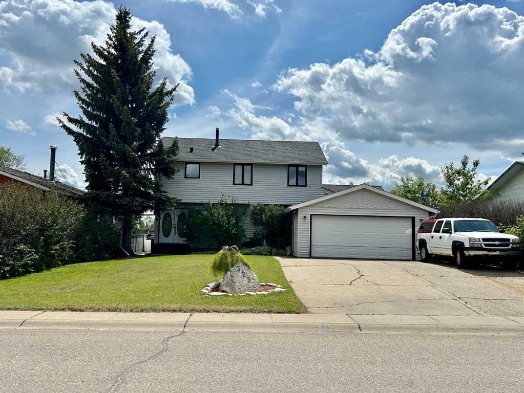 WOW! Just a wonderful LARGE home on a BIG FENCED LOT. With over 2800 square feet of living space - HERE IS A DETACHED HOUSE where your family can really spread out. The double front doors enter into a spacious foyer complete with a front hall closet. Enter the living room and be astounded by the SOARING ceilings, TONS of light from the south facing windows and a very cozy brick wood burning fireplace. The kitchen is ready for the gourmet chef in the family, to prep on the vast granite countertops and cook on the gas top burners with stainless steel suspended range hood. There is a full pantry for food - as well as loads of cupboards and drawers for storage. This home has a big dining room that can easily handle a large country table, chairs and buffet. There is a separate breakfast nook with a door that leads out to the sunny patio. For your convenience also on the main, is a 2 piece bathroom (the 1st of 4 bathrooms in this house). The upstairs has 3 bedrooms, a 4 piece bathroom, a 3 piece ensuite off the primary bedroom and an open den spot at the top of the stairs, that would make a great homework work station area. The lower level is finished with a dedicated laundry room, an exceptional 4 piece bathroom and 2 spacious bonus rooms that you can decide what to do with (private office, craft room, you choose). Sliding barn doors to hide extra storage. There is a double attached garage and large driveway at the front. The home has had many upgrades in the past, including CENTRAL Air Conditioning, upgraded 50 YEAR RUBBERIZED SHINGLES on the roof, some new windows, kitchen upgraded from original, refinished massive deck, upgraded electrical, furnace upgrade, basement redo, new landscaping (to name a few). The yard is fully fenced, with raised garden beds, large deck, sheds, paving stone and grassy area - all with a SUNNY FULL SOUTHERN EXPOSURE - great for growing your flowers and garden. Sellers have put a lot of work into this home with plans to stay forever, but a work transfer has changed these plans. Irricana is located just 20 minutes to Airdrie, 25 to Cross Iron Mills, Costco and under 30 minutes to Airport and Calgary city limits. Small town living with a lot going on - but still an easy commute to work, shopping and big amenities.
