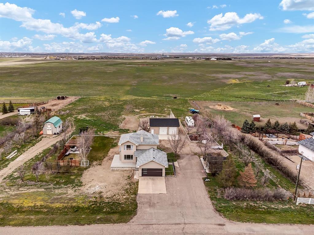 Enjoy your own little slice of paradise - 2.57 acres of space in a quaint little acreage community just minutes from Medicine Hat and offering CITY WATER!. Located just 2 minutes south of Dunmore, this property offers a two-storey home with 3 bedrooms up, a fantastic layout, and everything you need to make this a turn-key opportunity! All appliances included - just move in and enjoy! Double attached garage that has been recently finished & heated and upgraded with a new garage door. Basement is currently home to one bedroom, but awaits your creativity for future development. The home also has a newer furnace and tankless hot water system. Gorgeous country views from the north-facing back deck, overlooking the yard that has seen extensive work over the last 5 years. Additions to the property include an irrigated yard area with firepit space, new custom built 12x16 shed, dog run, and extensive concrete curbing that helps define the spaces in the yard. The most impressive addition to the property is unquestionably the detached 30x35 shop. This awesome structure is heated, and offers high ceilings, floor drains, and all the space you could possibly need to take on your projects. Original 16x22 barn-style shed offers additional storage space. Acreages in this price range don't come along often - Don't let this opportunity pass you by!
