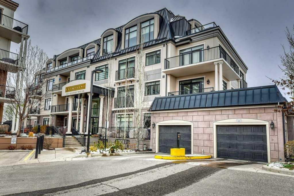 Incredible opportunity to own a luxury condo in South Calgary’s premier building “The Champagne” backing onto green-space. Desirable Quarry Park offers miles of pathways, river access, off -leash park and walkable grocery stores, restaurants, YMCA all within a quiet master planed community. Having a private main floor entry has advantages, including easy access for walks with your pet. The green-space offers a lifestyle that combines convenience, nature and tranquility, providing a holistic living experience. Spacious interior layout features a kitchen built for entertaining with the top-of the-line appliances, soft close drawers, granite countertops, accent lighting , full sized dining area plus a bright living room overlooking the patio. The sizeable bedroom features two large closets, lavish bathroom with granite counters & marble tile floor. Central air conditioning. Gas line for the BBQ. Separate titled storage locker in a secure room. Titled Parking stall is right beside the elevator (this parkade is one of the cleanest & brightest you will find). 2 Stall Car Wash! Concrete construction keeps this condo extremely quiet. An excellent option for anyone that wants the convenience of condo living but doesn’t want to comprise on quality. Well managed complex with great neighbours! Prime location with quick access to Deerfoot & Stoney Trail, Fish Creek Park. This superb condo is truly a must see!