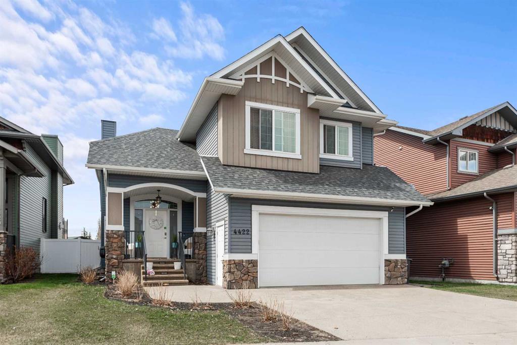 There is no detail spared in this stunning fully finished 2-Storey Mason Martin Built Home in Ryders Ridge! Step inside the bright and airy tiled front entrance and into the open main floor that features newer vinyl flooring, vaulted ceilings, big windows, and new light fixtures throughout. From the cozy living room with a floor to ceiling stone gas fireplace, step into your dining room with designer coffered ceiling and access to your fully fenced, west facing backyard. The stunning kitchen is a chef’s dream! From the new quartz counter tops and backsplash to the gas stove and large island. Stainless appliances and no shortage of cupboard space with an extra bank of cabinets added in the kitchen and garage entrance. An updated 2-pc bathroom and access to the attached heated (in-floor) double garage complete the main floor. Upstairs you will find the primary bedroom oasis that features a stunning coffered ceiling, walk in closet and 5-pc ensuite. The spa like ensuite boasts a large soaker tub, steam shower, & double sinks. A large laundry room is conveniently located on the second floor, along with two additional bedrooms and a 4-pc bathroom. The bright basement features large windows, a good size family room, a 4th bedroom, and a 3-pc bathroom. In-floor heat keeps the basement warm in the winter and the central A/C keeps the house cool in for those hot summer days. Enjoy the evening sun in your west facing back yard – complete with low maintenance composite deck, vinyl fence with double gate at the back (that could be used for RV or boat parking), shed and raspberry bushes. Walking distance to schools, parks, walking trails, shopping & restaurants plus easy access in & out of town.