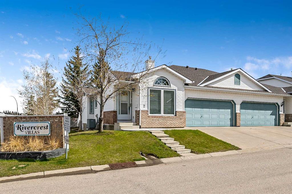 This lovely Riverbend Villa is an end unit with one of the only double garages in the entire complex. Located conveniently close to the local shopping area offering a grocery store, post office, restaurants, and more this spacious bungalow offers 1254 s. ft. of single-level living. The main floor is drenched with natural light with east, south, and west-facing windows, boasting 2 living rooms, 2 dining areas, a well-appointed kitchen, the primary bedroom with a walk-in closet and an ensuite bath, powder room/laundry combo, and access to the garage. Enjoy updates including new carpet in 2021, new kitchen appliances in 2021 + brand new microwave/hood fan, recently painted throughout, central air conditioning, triple pane windows, new HW tank in 2021, metal security shutters on the west side of the house for security & heat management, expanded rear deck and more. Snow removal and landscaping are included in the condo fee. The basement is partially finished with a 3 piece bathroom, bedrooms, workshop, ample storage and open space.