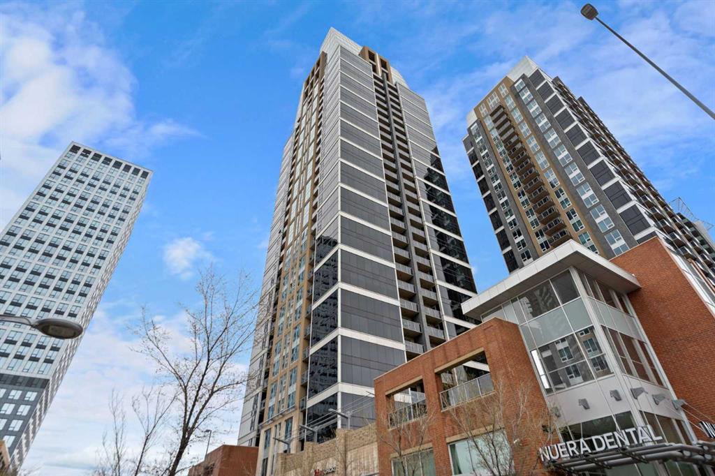Price Reduction! Upscale two bedroom, two bathroom condo located in the Nuera building in Calgary’s beltline. Impeccably designed with modern finishes, this spacious unit offers an open-concept layout, gourmet kitchen, and panoramic city views. Windows line the entire west wall of the spacious living/dining room featuring a private balcony on the north end. Property highlights include floor-to-ceiling windows, a spacious kitchen with full-height cabinetry, under-cabinet lighting, sleek granite counters and tall ceilings throughout. Nuera amenities feature a stylish contemporary lobby, daily concierge service, and a professionally equipped fitness center, underground visitor parking, separate storage unit and central A/C. Enjoy luxury amenities and proximity to shopping, posh dining, and cultural hotspots. Located in the perfect location for proximity to the soon to be Entertainment District of Calgary, this condo is ideal for urban professionals seeking refined living. Don't miss this prime opportunity!