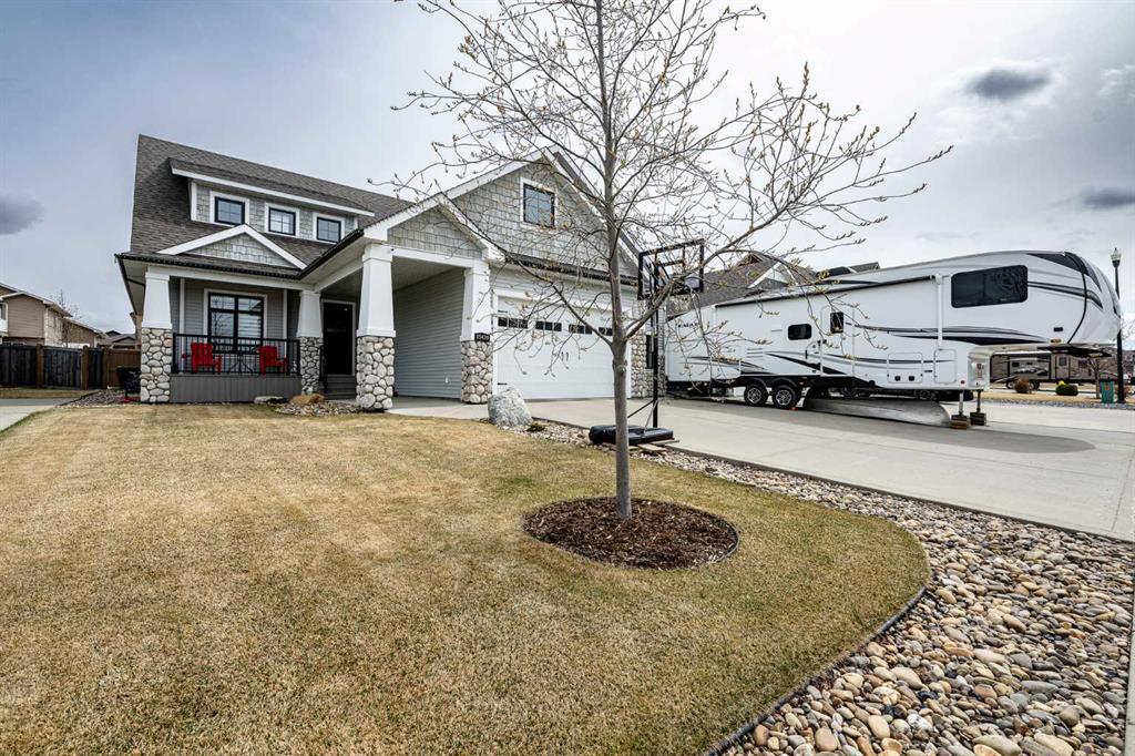The main floor features a sumptuous master bedroom retreat, complete with access to a covered porch, an ensuite oasis featuring double sinks, extra cabinetry, stone counters, a tiled shower, and a separate soaker tub. A spacious walk-in closet adds convenience and luxury to your daily routine. Hand-hewn engineered hardwood and ceramic tile flooring grace the main level, leading to a convenient laundry and boot room with built-ins, providing access to the oversized double heated garage. There is also a full home office space/den or 4th bedroom conveniently located next to the front entry. Upstairs, discover two generously sized bedrooms, a versatile media/bonus room with two huge storage closets, and a full bathroom, offering space and comfort for family and guests. With 1386 square feet of undeveloped space downstairs, the possibilities are endless for customization and expansion to suit your needs. Outside, the landscaped and fenced backyard beckons with its extra-long layout, partially covered composite deck, shed, and raised garden beds. Additional features include central AC, RV parking, and the convenience of Whispering Ridge's fantastic K-8 school, county taxes, and proximity to city amenities. Experience unparalleled luxury living in this meticulously crafted home. Schedule your private viewing today and prepare to indulge in the lifestyle you deserve.