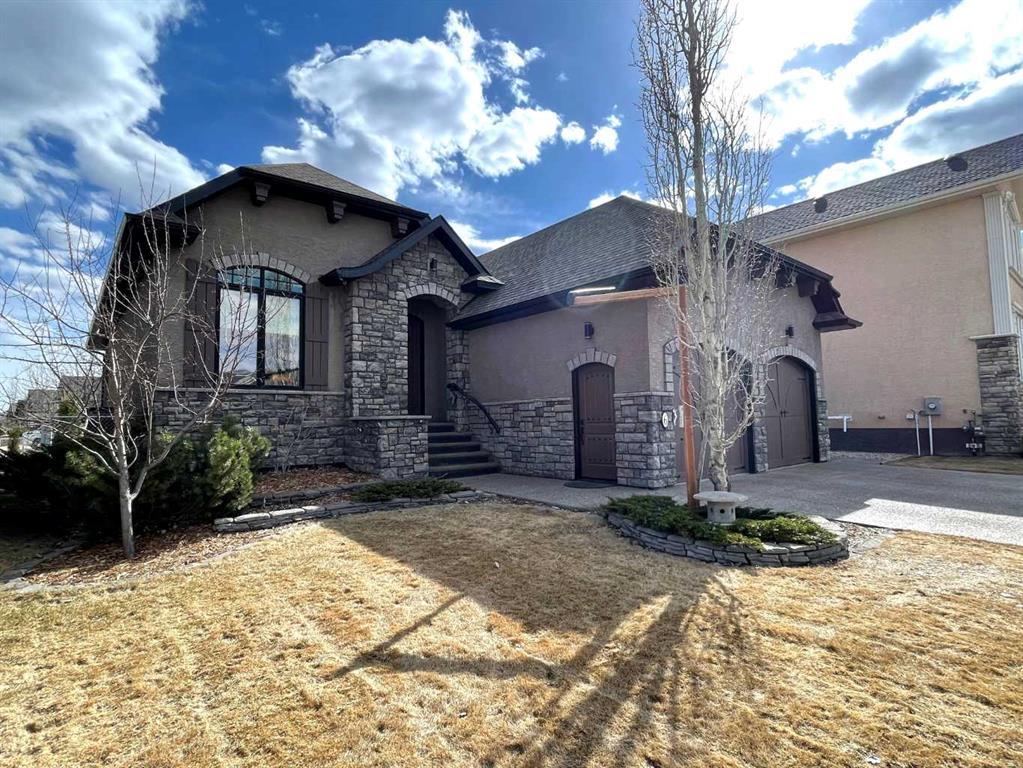 Welcome to 6 Overand Place! This elegant custom executive bungalow built by Noah homes offers a perfect blend of fantastic location and beautiful layout and finishings! Steps away from Maskepetoon Park, the Red Deer River trail system, Great Chief Park, Bower Ponds, the Red Deer Golf and Country Club and a short drive to downtown Red Deer plus easy access to QEII, the location is excellent!! Once inside, the open concept layout is bright, spacious and filled with natural light, 10' main floor ceilings and a wide and welcoming front entrance will greet it's new owner and the large front office is ideal for the working professional. The kitchen is well designed for the family chef and includes beautiful solid wood white cabinetry, a large center island with quartz top, quality stainless appliances including a gas cooktop, corner pantry and custom tile backsplash. The ample dining space is nicely connected to one of 2 covered rear decks, there is a gas line for your BBQ and the second deck off of the main bedroom is a perfect spot to enjoy your morning coffee. The airy living room features a gas fireplace with decorative mantle and granite hearth , there is quality luxury vinyl plank flooring throughout, built in speakers and ample room to relax and enjoy. The primary bedroom offers a walk-in closet, beautiful ensuite which includes tiled flooring, dual vanities, and a beautifully tiled jetted tub/shower. The main floor is made complete with a laundry/mud room off of the front attached garage, and a 2pce guest bath. The basement is professionally finished with a rec/games area, a separate space for media, a feature gas fireplace, plus a full wet bar! There are 3 full sized bedrooms downstairs, a full bath, infloor heat, and ample storage.