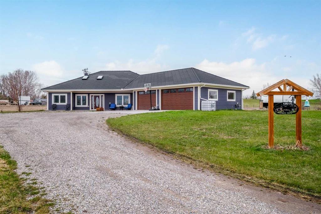 Welcome home to this lovely bungalow with a triple car garage nestled on 3-acre parcel just a mere 2-minute drive from Okotoks! With its prime location offering swift access to Calgary limits, this custom-built home on slab foundation promises the epitome of rural living with urban convenience. Pull up and appreciate the curb appeal with a stamped concrete patio at the entrance setting a welcoming tone, while low-maintenance rubber roofing and hardie siding complete the exterior look. Catch a glimpse of the Rocky Mountains before heading inside. Hardwood floors pave the way, while skylights & high ceilings invite natural light throughout the home accentuating the warmth of the feature fireplace. Two sitting areas provide lots of room for all your furniture with 1794 square feet on one level. No stairs to worry about! The heart of the home- a gourmet kitchen & dining area features quartz counters, a gas stove, pantry and plenty of storage. A large mudroom and laundry area provide practicality with double washers and a sink, seamlessly connecting to the oversized heated triple garage for added convenience. The primary bedroom features an abundance of windows inviting in views of the surrounding landscape. The ensuite bathroom has a soaker tub, triple sinks, linen closet, and a large tiled, walk-in shower complete with double rain heads and bench. A generously sized walk-in closet ensures ample storage. Two additional bedrooms and a full bathroom offer versatility for guests or family members. Step out to a multi-season, screened patio for year-round enjoyment of the picturesque surroundings. Theres A/C to ensure comfort and peace of mind with summer approaching. With ample space to spare, envision the possibilities for creating your dream workshop, or embracing outdoor leisure. Plenty of room to build your dream shop. Enjoy the serenity of country living without sacrificing proximity to city conveniences. Flexible possession available. Check out the virtual tour or book for private showing to see what all the buzz is with life in Okotoks and the Foothills!