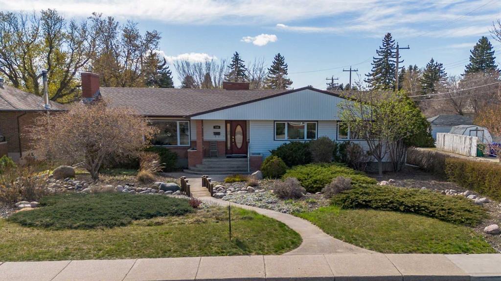 Large mid century bungalow home in established Victoria Park neighbourhood sprawling across 3 lots with 75 feet of frontage by 125 deep lot with side and back alley. Large front yard that is well landscaped. Home has been well cared for over the years. Second owners have lived here 20 years. Large welcoming entry. Big living room with carpet and feature stone wall with gas fireplace insert. Large updated windows on main floor let in tons of natural light and. Living room also showcases original curved wall to ceiling design from the mid-century era. Dining room is a good size for family meals. Current owners added a solarium/sun room off the dining room with tinted glass and built-in heat source. Perfect to enjoy your yard without having to be outside. The sun room also has a door to a deck out back to enjoy the outdoors. Kitchen has plenty of oak cabinets, some updated appliances, updated vinyl plank flooring, and a built-in breakfast eating area with bench seating. Laundry room is just off the kitchen and also has the updated vinyl floors, and leads to a boot room with rear entry to the home. Hallway on main leads to 3 big bedrooms with original floor to ceiling wardrobe closets. Large primary bedroom has 3 piece ensuite. There is also another full bathroom off the hallway with tub/shower combo. Basement is fully developed with massive 41x15 family room that features a stand alone gas fireplace in the corner. Basement also has a 4th bedroom with built-in closet and dresser, a tiled gym room with separate wood sauna, an office that is big enough to use as a 5th bedroom if you just add an armoire, a bathroom with shower, a smaller storage room with sink, and a large furnace/utility/storage room. Backyard is an oasis with garden boxes, interlocking patio with pergola seating area, nice mature trees, and single detached garage with adjoining carport that has a garage door. There is also a built-in shed off the back of the garage. Yard is fenced and landscaped with plenty of lawn space too! Great location close to all high schools, and lots of amenities. Make this your next home and call your Realtor today!