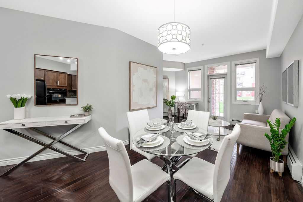This meticulously maintained 1 bedroom condo with direct access to the green space is in the highly sought after Robson, Summit of Montreux. The unit features an open concept layout with 9' ceilings featuring hardwood and ceramic tile floors. The stylish kitchen includes upgraded Bosch and LG appliances (stove-top and built-in oven), Maple cabinets in a cappuccino stain, and an upgraded tile backsplash. The large master suite connects to a walk-through 4 piece bathroom with a stacked washer and dryer. From the living room you can walk out to your large patio on the green space (natural gas hook up on patio). Enjoy your morning coffee on the private feeling patio. The unit has been freshly painted. Includes one titled underground parking stall and storage locker. The complex features a fitness room, bike storage, and ample visitor parking. This gem is nestled away in the Springbank Hill area and is close to ample pathways, green space, public transportation (including LRT), shopping centres, the Westside Rec Centre, and highway access to escape to the mountains.