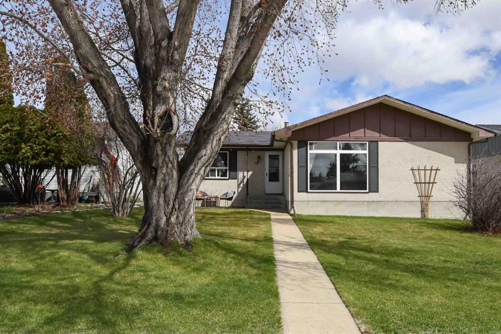 Family sized bungalow with 2 bathrooms, 5 bedrooms and a 14 x 24 detached garage in Oriole Park ~ This home is located in a mature neighborhood, close to Ecole Oriole Park School, G.H. Dawe Community Centre, Bower Ponds, community green spaces and is in a convenient central location for shopping and business areas in Red Deer. This home has a beautiful and welcoming front yard with mature trees. The L-shaped design of the front of the house offers a somewhat sheltered front entry and charming street appeal. Once inside, the front and back door entry offers a defined space to keep coats, boots & shoes in their place and away from the main living areas. The large living room has a wonderful large vinyl framed window with small sliding sections at the top of the window to open for fresh air. The kitchen is a warm and homey space with wood cabinets, a large window at the sink looking into the large backyard. The dining area is a good sized space with a south facing window. There are 3 bedrooms on the main floor as well as a 4 piece bathroom. The interior doors on the main floor are a unique feature as they are floor to ceiling height. In the basement, there are 2 more bedrooms (some windows in the basement may not meet today’s egress) and a 3 piece bathroom. There is some finishing of walls & ceilings needed in the basement and portable wardrobe closets are currently being used. The larger bedroom in the basement has a large vinyl framed window and a cheater door to the cheerful bathroom which has a large soaker jet tub and a wall mounted fireplace. The laundry area is in the basement along with and a den/storage room (no window). The backyard is fenced, has mature trees, a shed and a detached 14x24’ garage with back lane access. Note: vinyl windows replaced approx. 5 years ago ~ the bathroom in basement and hot water tank replaced approx. 10 years ago ~ approx. 2009 - shingles were replaced.