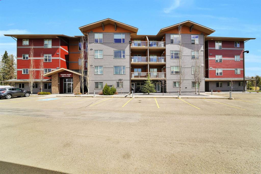 LeCerf Point Condominiums Suite #203. Modern 2 bedroom, 2 bathroom 2ND-floor suite on the west side of the building overlooking the parking lot. Open concept kitchen, living-dining area with the master to the right of the main living space the 2nd bedroom, and main bathroom to the left. Suite Features include In-floor heating with a localized Air Conditioner (Wall Unit), laminate flooring throughout the living area with carpeted bedrooms, an electric fireplace, a convenient in-suite laundry/storage room (located just off the kitchen), 4 appliances including stainless steel fridge, stove, dishwasher and over the range microwave, rich mahogany stained/colored modern kitchen cabinets, with soft closing doors, granite countertops throughout, natural gas line to the balcony. Building features allow for a worry-free lifestyle. The building offers an elevator, a small fitness room (4th floor), air-conditioned common areas, an integrated security system, and secured entrance, in-building mail delivery & pick-up, a sound barrier between floors, and professionally landscaped grounds. Suite 203 includes 2 titled covered parking carport stall. Annual taxes for unit+carport are $2193.45+$134.98+$134.98 ($2463.41), As of March 2023 monthly condo fees for unit+carport are $467.01+$12.29x2 ($491.59), condo fees include water, sewer, garbage, and gas. TURN-KEY UNIT, your carefree life awaits you!