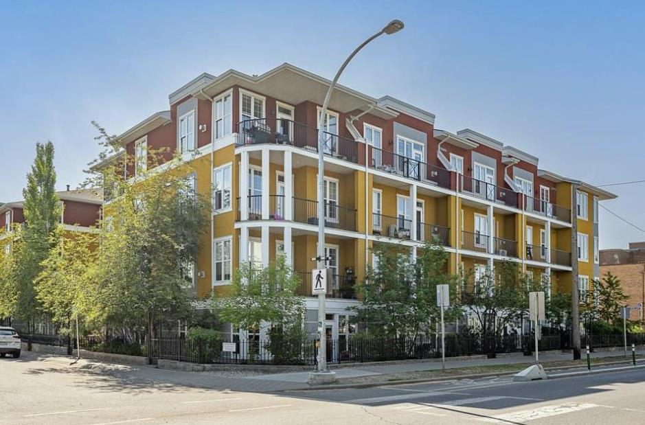 This well appointed, dog friendly, one-bedroom, one-bathroom condo is situated in the vibrant neighborhood of Mission, one of Calgary's most desirable areas. Enjoy ultimate privacy and unobstructed views from this top-floor gem. Efficiently designed kitchen, equipped with rich cinnamon-colored cabinets, a raised breakfast bar and stainless steel appliances flows effortlessly into the dining room. Utilize the nook area as a cozy home office space or storage providing flexibility to suit your needs. Cozy up by the fireplace in the sun filled living room, perfect for relaxing or entertaining guests. Enjoy your morning coffee or evening cocktails on the large southwest facing deck. The expansive deck offers ample space for BBQ's and gatherings. The spacious bedroom offers ample space and natural light for your comfort. Convenient walk through closet allows you access to the 4 piece bathroom and laundry. Enjoy the vibrant community of Mission knowing your vehicle is safe in the secured underground parking stall, additionally, benefit from a storage locker for your seasonal items and belongings. From this coveted location, you are steps from the bridge that gives you access to MNP Sport Center, plenty of green space for your pet, plus the convenience of the Arts and Entertainment District within a 10 minute walkaway. Dive into the eclectic mix of boutiques, cafes, and galleries that line the streets, or lose yourself in the city's cultural heartbeat. Mission's unique charm ensures you're always at the center of the action. Embrace the vibrant community spirit of Mission.