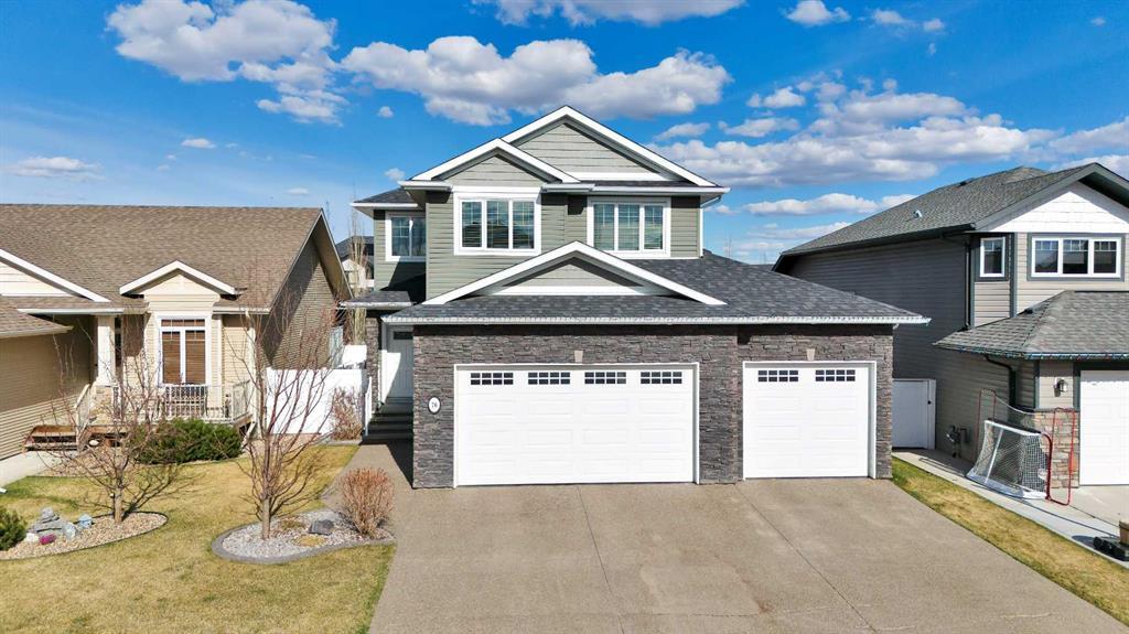 The perfect family home is waiting for you at 70 Voisin Close! With a great combination of desirable features, including a heated TRIPLE ATTACHED GARAGE, great neighbourhood, and thoughtful layout, this Quality built Canada West home could be the ideal fit! The main level is bright and open and the entire home has been recently painted in contemporary colours. The large tiled foyer with a walk-in front closet will invite you in to the main living area where you'll find 9-foot ceilings, HARDWOOD flooring, a gas fireplace with gorgeous stone surround in living room, and a generous dining area! The family chef will appreciate the kitchen with a large center island, GRANITE COUNTER TOPS & full backsplash and WALK-THROUGH PANTRY. A second large entrance from the garage leads to the mud room and MAIN FLOOR laundry with a laundry sink, ample work space and storage, plus there is a conveniently located 2pce guest bath. The upper level is beautifully designed for family living, with a huge front BONUS ROOM, full bath, and 3 bedrooms including the spacious master bedroom with a 5pce ensuite featuring DUAL VANITIES, a SOAKER TUB, separate shower & walk-in closet. The car enthusiast will enjoy the triple car heated garage with a CUSTOM epoxy metallic flooring and ample storage. The basement has been framed for a future family room with space for TWO ADDITIONAL BEDROOMS and a bathroom, and offers great potential for additional living space and future equity! There is a partially covered and freshly sealed rear deck, the front driveway has been recently sealed, the yard is landscaped and has vinyl fencing, all appliances and window coverings are included plus there is a high efficiency furnace, tank-less hot water, water softener, roughed in floor heat & air conditioning. This is a great home in a great location!