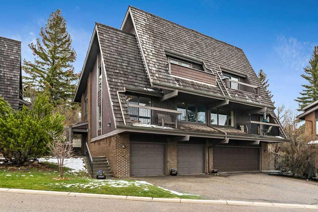 Stunning panoramic views of COP and the Rocky Mountains! This extensively renovated home features premium hardwood floors and LED lighting throughout, with heated tile floors and quartz countertops in the kitchen and bathrooms. This highly desirable, quiet location is adjacent to Wildflower Park and Ranch Estates off-leash dog park in the community of Ranchlands Estates. The upper floor features the massive primary bedroom with its own mountain-facing balcony and an ensuite bathroom. The second bedroom also has its own ensuite bathroom and a view of the beautiful garden patio and greenspace. The main floor features an expansive living room where you can enjoy gorgeous sunset views and a wood-burning fireplace. The home has a tastefully renovated large kitchen with ample quartz countertop, loads of cabinet space and a breakfast nook facing the botanical garden. A half-bathroom completes the mainfloor. The lower level has laundry appliances, a new high-efficiency furnace and water heater (both installed 2021), storage, and entry to your over-sized double garage. Surrounded by mature trees and the park space of the complex, your cobblestone patio is large with a garden bed and outdoor bbq and dining area. The Hycroft Estates townhouse complex has a great management board, friendly neighbours and a strong sense of community. The Hycroft Estates complex borders off-leash natural parks with lots of paths to hike, explore and sled. Walking distance to two elementary school and multiple playgrounds. Easy access to nearby Crowfoot shopping area, 20 minute drive to downtown, and quick bus routes to c-train stations. ***Open House Saturday May 4 12-2pm***
