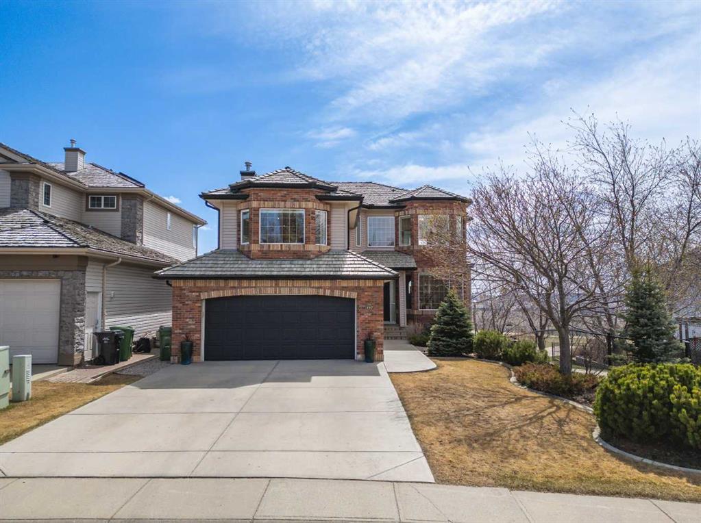 Panoramic Views Await in this Spectacular Rocky Ridge Residence! Discover unparalleled vistas stretching from east to west in this exceptional family home nestled in coveted Rocky Ridge Ranch in Calgary, AB. Boasting over 4150+ square feet of opulent living space, this residence promises a lifestyle of luxury and comfort. If you crave sun-drenched spaces, prepare to be captivated. Step through the grand open-to-above foyer, greeted by a sightline that effortlessly guides you to the exquisite staircase and remarkable railing. Glide along gleaming hardwood floors, passing a formal dining room adorned with a two-way gas fireplace, and arrive at the breathtaking living room, where expansive picture windows frame the awe-inspiring views. Imagine Christmas with loved ones in this beautiful room. Prepare to be wowed by the chef's kitchen, recently renovated to perfection. Adorned with striking new tiles, a waterfall island, prep sink, white cabinetry, quartz counters, and stylish millwork surrounding the range-hood, this culinary haven is a showstopper. Imagine crafting meals while keeping an eye on your little ones playing in the park just beyond your backyard. Entertain effortlessly on the main floor balcony, perfect for hosting BBQs or simply savoring summer evenings. A spacious walk-thru pantry leads to the back mud/laundry room, complete with a discreet half bath for added privacy. Ascend to the upper level, where a spacious bedroom with front exposure awaits. A few steps further reveals another expansive bedroom with a compartment 3pc bath, large walk-in closet and downtown vistas. Finally, retreat to the primary suite, featuring his and hers walk-in closets, an expansive 5pc bathroom, and breathtaking views of Downtown, C.O.P., and the majestic Rocky Mountains. The fully finished walkout basement is an entertainer's dream, boasting a spacious family room, second gas fireplace, gym, office, fourth bedroom, 3pc bath, wet bar, and direct access to the serene yard featuring a hot tub (yes, it's included). Additional highlights include fresh paint, A/C, in-ceiling speakers, U/G sprinkler system, outdoor lighting, security system, and numerous recent upgrades. Conveniently located within walking distance of the Tuscany LRT station, the expansive YMCA, and the Rocky Ridge Ranch HOA clubhouse, this home offers amenities for every lifestyle. Crowfoot shopping center, renowned for its dining and retail options, is just a short drive away, while multiple schools of all levels ensure convenience for families. Easy access to Crowchild trail, Stoney Trail, and a quick 1 hr drive out to the Canadian Rocky Mountains if you love adventure. For those seeking to establish roots in a vibrant community and in a home with unparalleled views, this home is the epitome of perfection. VIRTUAL TOUR AVAILABLE!