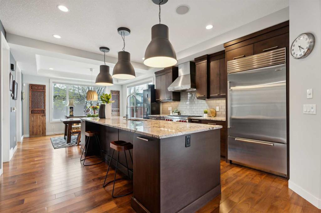 Welcome to this beautiful family home in the heart of Killarney. Perfectly situated on a corner lot with quick access to all this fabulous community has to offer. Upon entering you will find a spacious living room with large windows, custom built-ins and beautiful stone surround fireplace. Continue on to your open concept kitchen and dining room. Kitchen showcases an abundance of cabinetry, granite countertops, top of the line Wolf and Subzero S/S appliance package, oversized island with bar fridge, and walk-in pantry. Large dining area has plenty of room for entertaining. Carry on out to your west facing backyard where you will find a beautifully landscaped oasis with deck, patio, privacy wall with water feature, quaint lighting, bed additions, mature perennials, and RV parking pad next to the double detached heated garage. The upper level presents a spacious master retreat featuring a walk-in closet and huge spa-inspired ensuite with steam shower and soaker tub. Additional two bedrooms have large closets and plenty of natural light. This floor is completed by a 4 piece bath and laundry room. Lower level is perfect for entertaining and features a bar with waterfall island and built-in double head beer taps and bar fridge that holds 20L kegs, a media/rec room and another huge bedroom with built-in desk and a 4 piece bath. Additional notable features include: ceiling speakers, custom blinds, designer lighting throughout, A/C, multi-zone furnace with Nest thermostat controls on all levels, triple paned windows, central vacuum system, plenty of storage and much more! Book your private showing today!