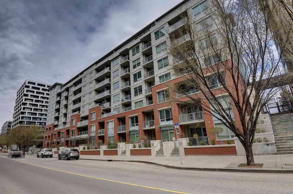 WOW! 2 Bed | 2 Bath | Den | In-Suite Laundry | Titled Underground Parking | Storage | 877+ sq. ft.. Welcome to Bridgeland Crossings II. Come and enjoy this stylish & sleek 2 bedroom, 2 bath condo, You will also enjoy a dedicated den/office space. From the moment you walk in you will be impressed. Kitchen Perfection – w/ streamlined custom-designed white cabinetry, A Chef's delight- Stainless Steel Appliances- Gas cook top, Convention Oven, Fisher Paykel Fridge w/water and ice, Upgraded Hood fan, Microwave + Kitchen aid Dishwasher. Quartz Countertops, and an Eat-Up Island. Luxury vinyl flooring in kitchen, living room and dining area.. Open plan, Luxury vinyl plank flooring in kitchen, living room/dining room space w/ high ceilings and expansive windows overlook the Community garden. Wake up to the East sunrise in the Primary Bedroom featuring a walk-in closet w/ built in cabinetry. A 4 pc ensuite w/ 2 sinks, full size tiled oversized walk in shower and lots of cabinet space. The 2nd bedroom is a great size with a 2nd – 4 pc bath with soaker tub, right beside it. Enjoy morning coffee/tea on the east facing deck, w/ unobstructed views and a gas line BBQ outlet. Other features include: upgraded laminate flooring, quartz counters throughout, motion sensor in walk-in closet, USB power outlets, luxurious air-conditioning, Freshly painted neutral colour. You are going to Love the amenities offered in this well thought out complex. 2 Fitness Centre’s, Yoga Studio, Sports Lounge/Movie Room, Relaxing Outdoor Patio Lounge w/ BBQ and firepit area, convenient Dog Wash Station, Guest Suite, Car Wash, and Bike Hub Station. Kitty Corner to Murdoch Park that often has food trucks and other events. Bridgeland Community Centre with an unbeatable location. Walk to trendy shops, restaurants, the Bow River Pathway System, Bridgeland Train Station, Tom Campbell Hill’s Natural Park, and the coveted Bridgeland Market. Close to Telus Spark, The Calgary Zoo, St. Patrick’s & St. George’s Islands, and the Downtown Core. Experience the Urban Lifestyle and immerse yourself in all Bridgeland has to offer. One of the most desirable Inner communities.
