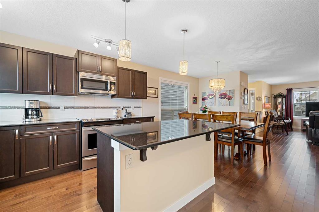 Welcome to this immaculate home in the sought after southeast community of Legacy. This home is surrounded by walking paths and parks, it is walking distance to shops, stores, restaurants and cafes and it is close proximity to schools, day cares and both highways; Stoney Trail and 2A (Macleod Trail) for easy access and commuting ! This home welcomes you with a large east facing front porch leading you into the front foyer, a large family room off the entrance, perfect for the family TV, with perfect condition dark hardwood floors throughout the entire main level, a dining room big enough to host family holiday dinners of all sizes and a perfectly laid out upgraded kitchen at the back of the home! In the kitchen there is a large window over the sink overlooking the backyard for you to watch the kids while making dinner! This kitchen also possesses tons of counter space with granite counter tops, an oversized island, stainless steel appliances with an upgraded stove/oven and dark wood cabinets! The main floor is complete with a 2 piece bathroom and a large back door mud room leading you out onto the wood deck, setup for your gas BBQ, then into your good sized grass yard and to the detached garage, with RV parking and a paved alley. This west facing backyard also gets all the evening sun! Upstairs you’ll find a large primary bedroom with a walk-in closet and a 4 piece ensuite, 2 more good sized bedrooms with walk-in closets, a 3 piece bathroom with linen closet, and stacked washer & dryer in the laundry room! The unfinished basement awaits your design with many options! This well cared for home also has a central vacuum system, a gas line on the back deck, and Hunter Douglas blinds! This home will sure impress and has to be seen to be truly appreciated, Don’t miss out !