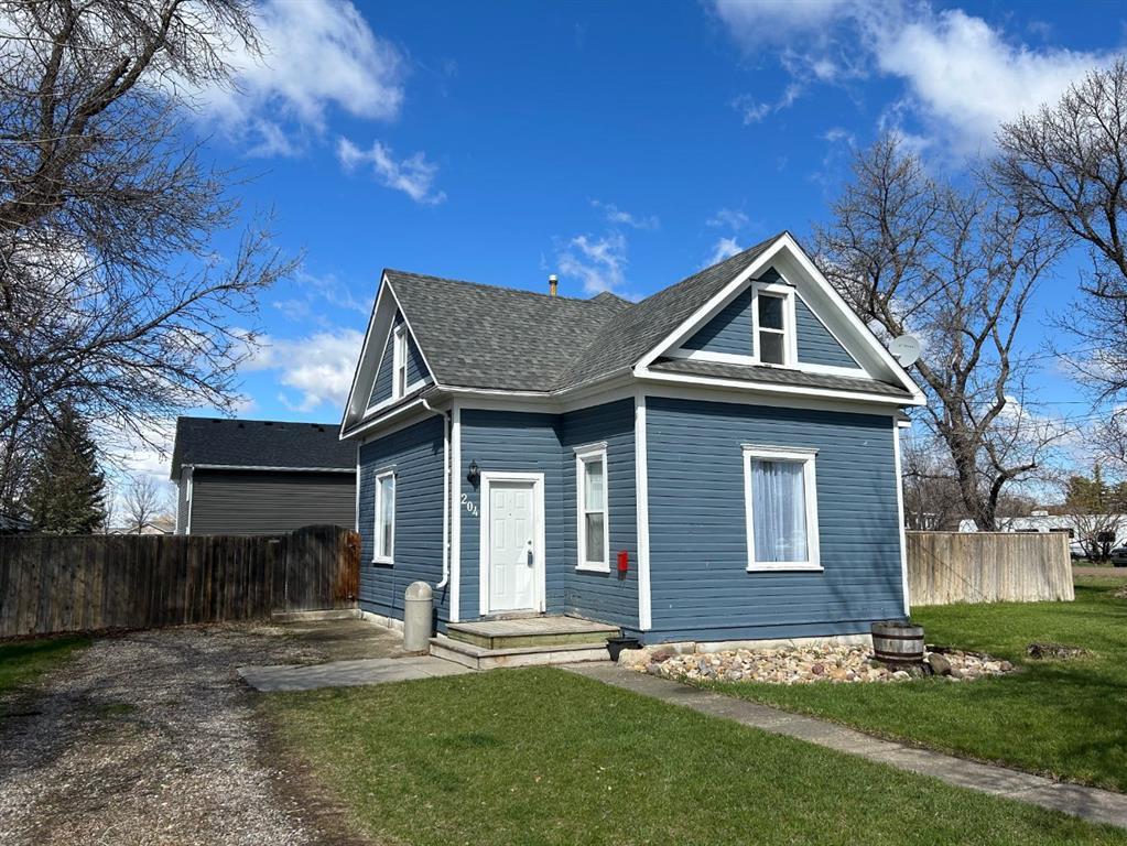 Early 1900's character home. This beautiful home has many great features like 9.5' ceilings, a LARGE open kitchen/dining area with plenty of cupboard and counter space, and a pantry for lots of storage. It has an inviting living room off the front entrance, and a back room of the back entrance. It has an extra room off the kitchen that could be great for an office, or whatever the need may be. It has main floor laundry, and a renovated main floor bath with a stand alone soaker tub and a separate shower. The 3 bedrooms are located on the upper floor, along with another bathroom, and storage in the unfinished attic. The home is sitting on a crawl space but has a partial basement where the furnace and water tank are located. The roof was re sheeted and shingled about 15 years ago along with smart board fascia installed. The main floor windows were replaced about 11 years ago. There is a large deck that wraps around 3 sides of the house and is great for enjoying the fenced in yard. This home is just east of the Lion's Park, and only a couple blocks from the nature trail entrance. This is an adorable charming home that has had many updates and upgrades over the years and is definitely worth checking out!