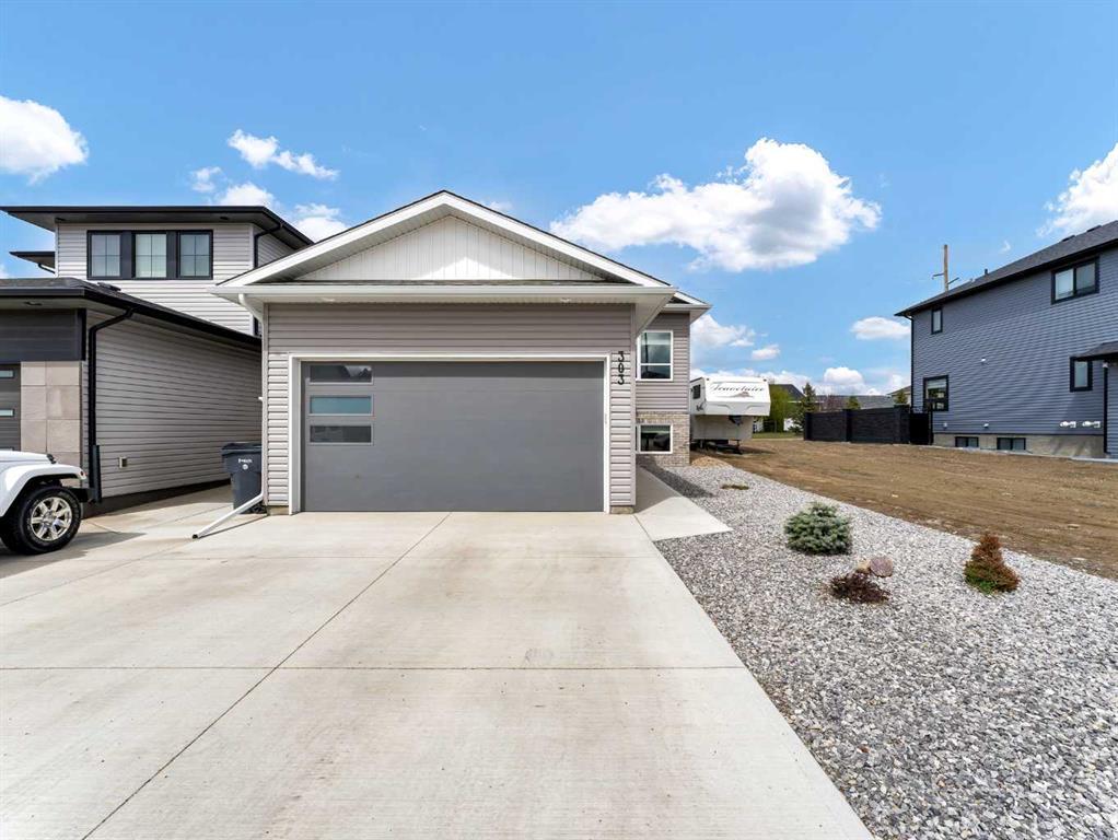 This gently lived in home is like new! With gorgeous modern finishes throughout, you can move right into this 5-bedroom, 3-full bathroom Smart Start built home located in SE Southridge. The main floor offers beautiful vinyl plank flooring throughout, vaulted & 9-foot ceilings, and neutral white and grey tones. The open concept design features a good-sized kitchen with grey maple cabinets, quartz countertops, a centre eat-at island with sink, like-new stainless appliances, and a corner pantry. Flow directly into the dining space which has space for a large table and the front living room with large front window. The large master suite has a walk-in closet with custom built-ins, and a 3-piece ensuite with large walk-in shower. On this floor you will also find a 2nd bedroom, a 4-piece main bathroom, and a laundry closet with stacked washer and dryer. The lower level offers a huge family room, 3 large bedrooms with 9-foot ceilings, and a 3-piece bathroom with walk-in shower. The fully fenced yard (maintenance free white vinyl) has maintenance free landscaping, with no lawn to worry about, and provides a covered back deck with maintenance free composite deck boards, xeriscaping front and side yard, and backs onto a walking path. Average utilities are $315/month.