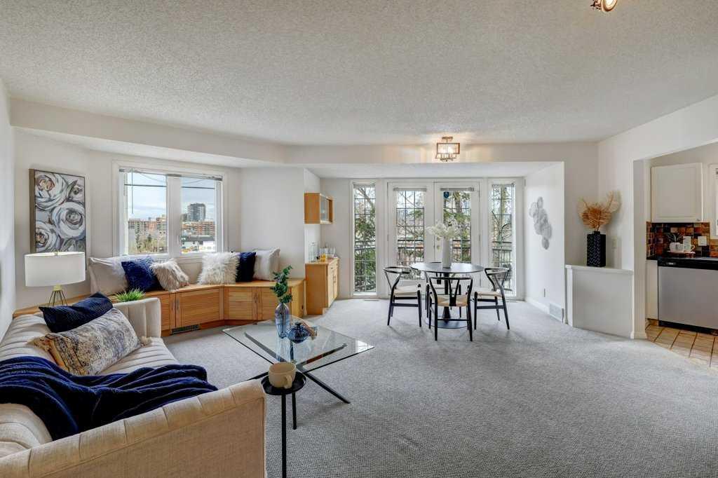 Step into luxury urban living with this extraordinary townhome boasting unparalleled VIEWS of the vibrant downtown skyline. Perched atop the esteemed Bankview/Lower Mount Royal area, this 1277 sqft gem spans three levels, each meticulously designed to maximize comfort and elegance. Completely re-painted from top to bottom, it is move in ready. Natural light floods the open-concept mail level, accentuating the unique finishes and chic design elements. A gas fireplace with a sleek marble surround sets the ambiance, while built-ins in the living and dining areas offer both style and functionality. Tucked away in its own private nook, you’ll find the kitchen. Adorned with granite countertops and stainless steel appliances, it is a culinary haven waiting to be explored. The stove is Brand New! The dining area boasts French doors which lead you to your own private balcony. Ascend to the second level, where a tranquil bedroom, accompanied by a 4- piece bath and generously sized den/2nd family room awaits. Whether utilized as a guest retreat or a versatile home office, this level offers versatility to suit your lifestyle. On this floor you will also find your in suite laundry with a stacked washer and dryer. The crowning jewel of this residence awaits on the top floor, where the spacious primary suite beckons with vaulted ceilings and your own private 5-piece ensuite. French doors open to your own Romeo & Juliet balcony, where you can savor panoramic views of the cityscape, aglow with the hustle and bustle below. Outside, a fully landscaped yard eliminates the hassle of maintenance, allowing you to revel in urban living without compromise. A private oversized attached garage provides secure parking, adding to the convenience of this exceptional property. There is additional parking space on the driveway for another vehicle, as well as off street parking for your guests. Situated within walking distance to the trendy shops and renowned restaurants of 17th Ave & Mount Royal, this townhome epitomizes the epitome of urban sophistication. Embrace the ultimate urban lifestyle and make this unparalleled residence your new home.
