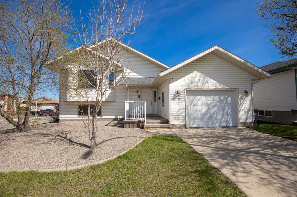 An affordable residence nestled on a crescent boasting a spacious yard facing north. Suitable for investors or first-time home buyers. Bi-level style homes are currently sought after due to their expansive, well-lit basements and large windows. Upon entry, you are greeted by a generous foyer leading both up and downstairs. Ascending, you'll find a living area with a sizable picture window, seamlessly connected to the dinette and kitchen. The "L" shaped kitchen cabinetry offers ample counter space for culinary endeavors. Accessible from the kitchen is a sizable side deck, ideal for outdoor gatherings and barbecues; perfect for relaxing after a long week at work. The main floor comprises three bedrooms and a spacious bathroom. The primary bedroom features a closet for added convenience. The basement hosts three additional 3 bedrooms, a recreation room, utility/furnace room, separate laundry facilities and another full bathroom. Thanks to its bi-level design, the basement benefits from abundant natural light, creating a bright and inviting atmosphere. The property's north-facing yard is private, fully fenced ensuring safety for children and pets, 2 – 6 foot gates to access the backyard with room to park your holiday trailer/RV and the deck. Additionally, the single attached garage accommodates one vehicle with extra space. This property presents an opportunity for personalization and enhancement, making it an ideal starter home. Conveniently located with easy access to the highway, this residence underwent some recent renovations: Air Conditioner, Furnace, Air Purifier were updated/installed in May 2023. Ducts were also cleaned at that time. A larger hot water heater was installed about 3 years ago. Upstairs had the laminate flooring installed except for 1 bedroom and some areas were painted (August 2023). Innisfail is a town in central Alberta, Canada. It is located in the Calgary-Edmonton Corridor, south of Red Deer at the junction of Highway 2 and Highway 54. For those who would love to live in small town setting, but close proximity to Red Deer (30 min) this will be a perfect choice!